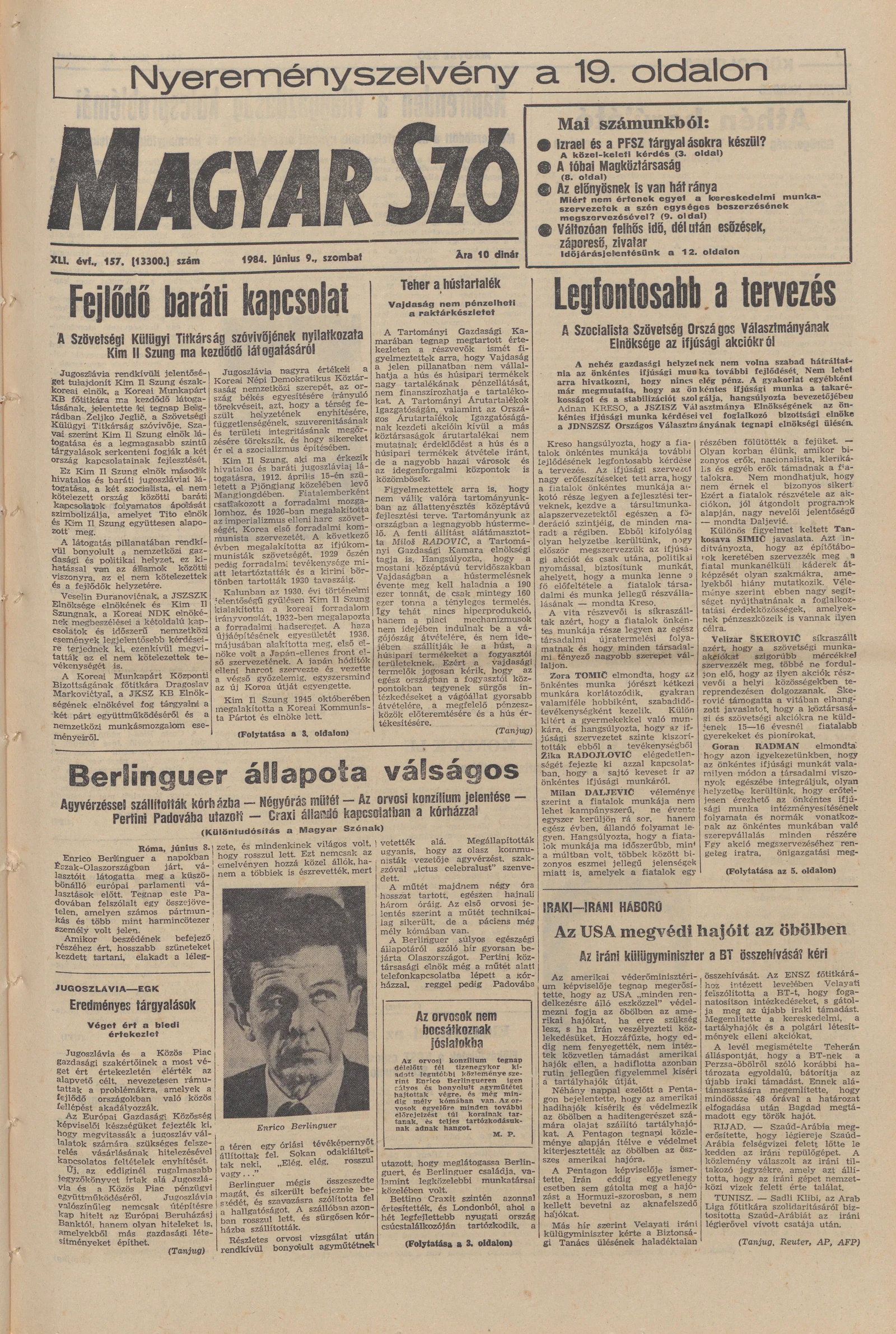 Magyar Szó, 41. évf. 1984. június 9. 157. sz. 1–24. oldal