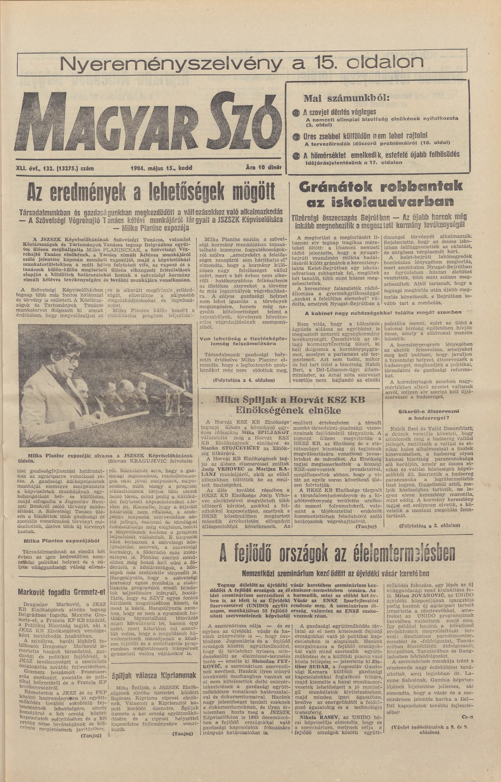 Magyar Szó, 41. évf. 1984. május 15. 132. sz. 1–32. oldal