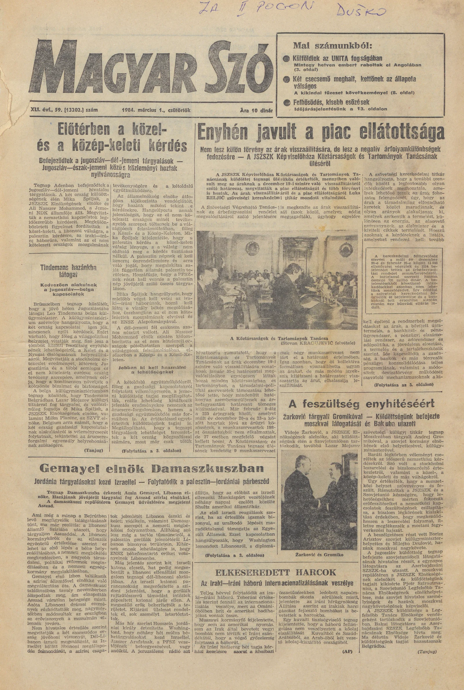 Magyar Szó, 41. évf. 1984. március 1. 59. sz. 1–20. oldal