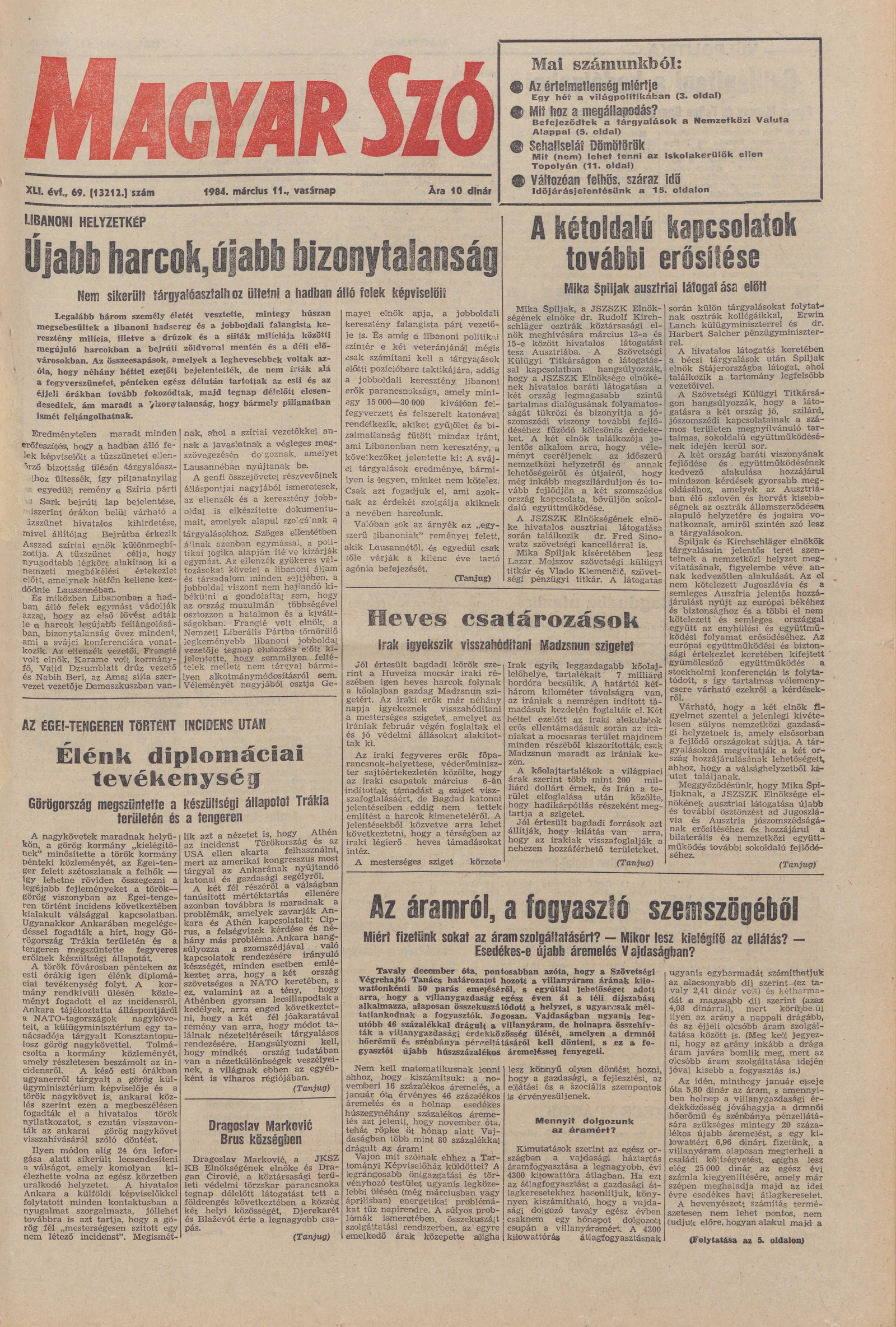 Magyar Szó, 41. évf. 1984. március 11. 69. sz. 1–28. oldal
