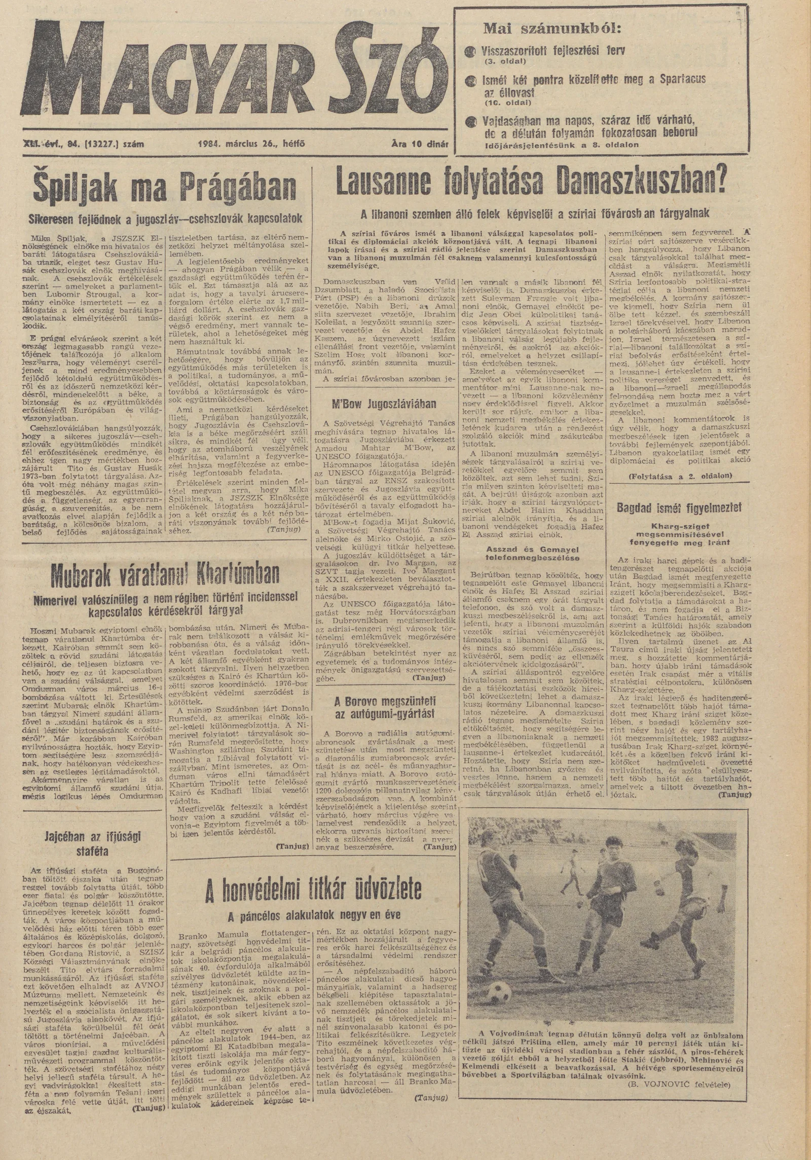 Magyar Szó, 41. évf. 1984. március 26. 84. sz. 1–8. oldal