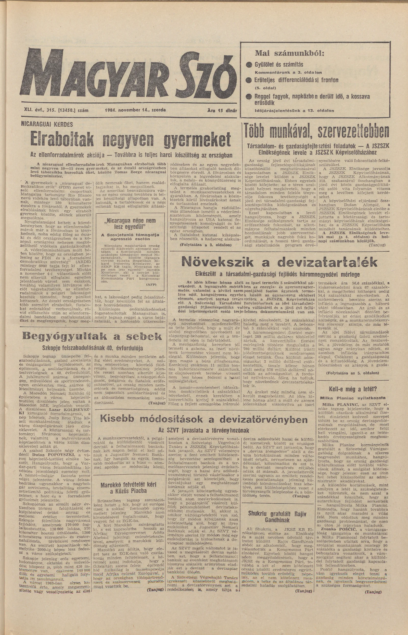 Magyar Szó, 41. évf. 1984. november 14. 315. sz. 1–16. oldal