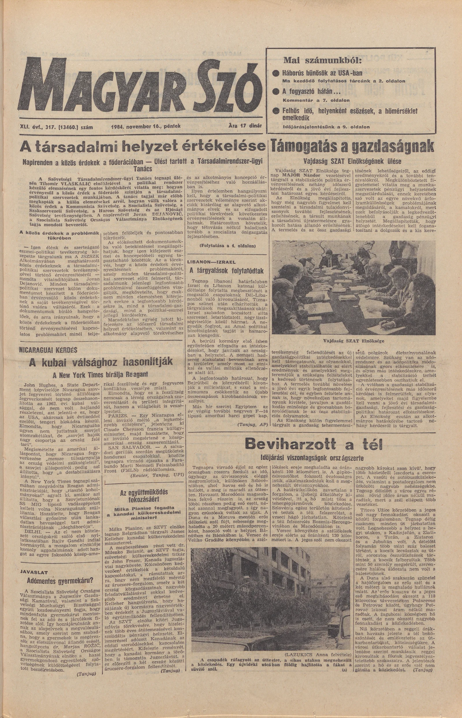 Magyar Szó, 41. évf. 1984. november 16. 317. sz. 1–20. oldal