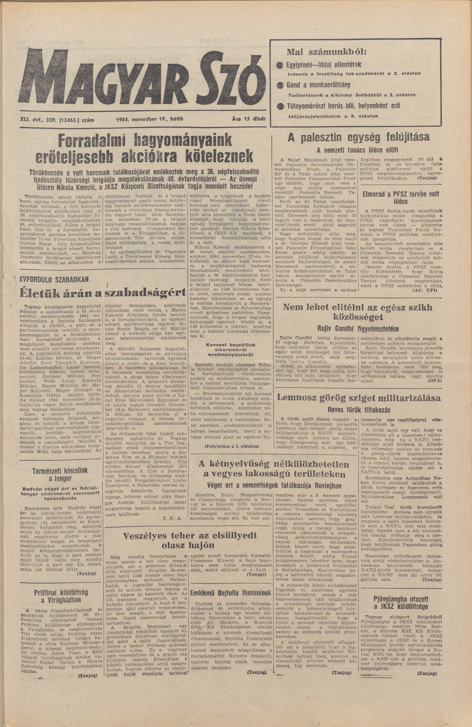 Magyar Szó, 41. évf. 1984. november 19. 320. sz. 1–8. oldal
