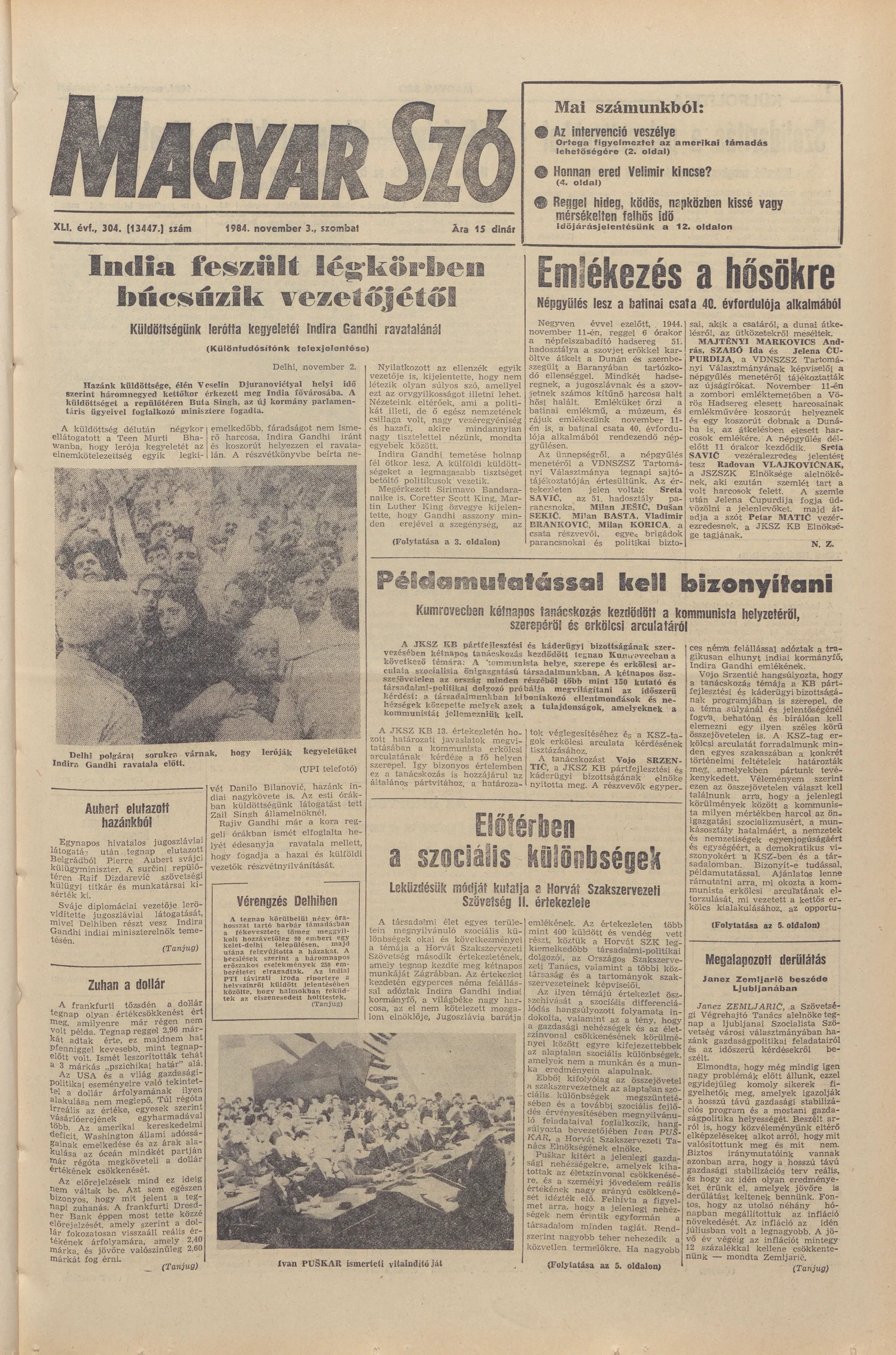 Magyar Szó, 41. évf. 1984. november 3. 304. sz. 1–24. oldal