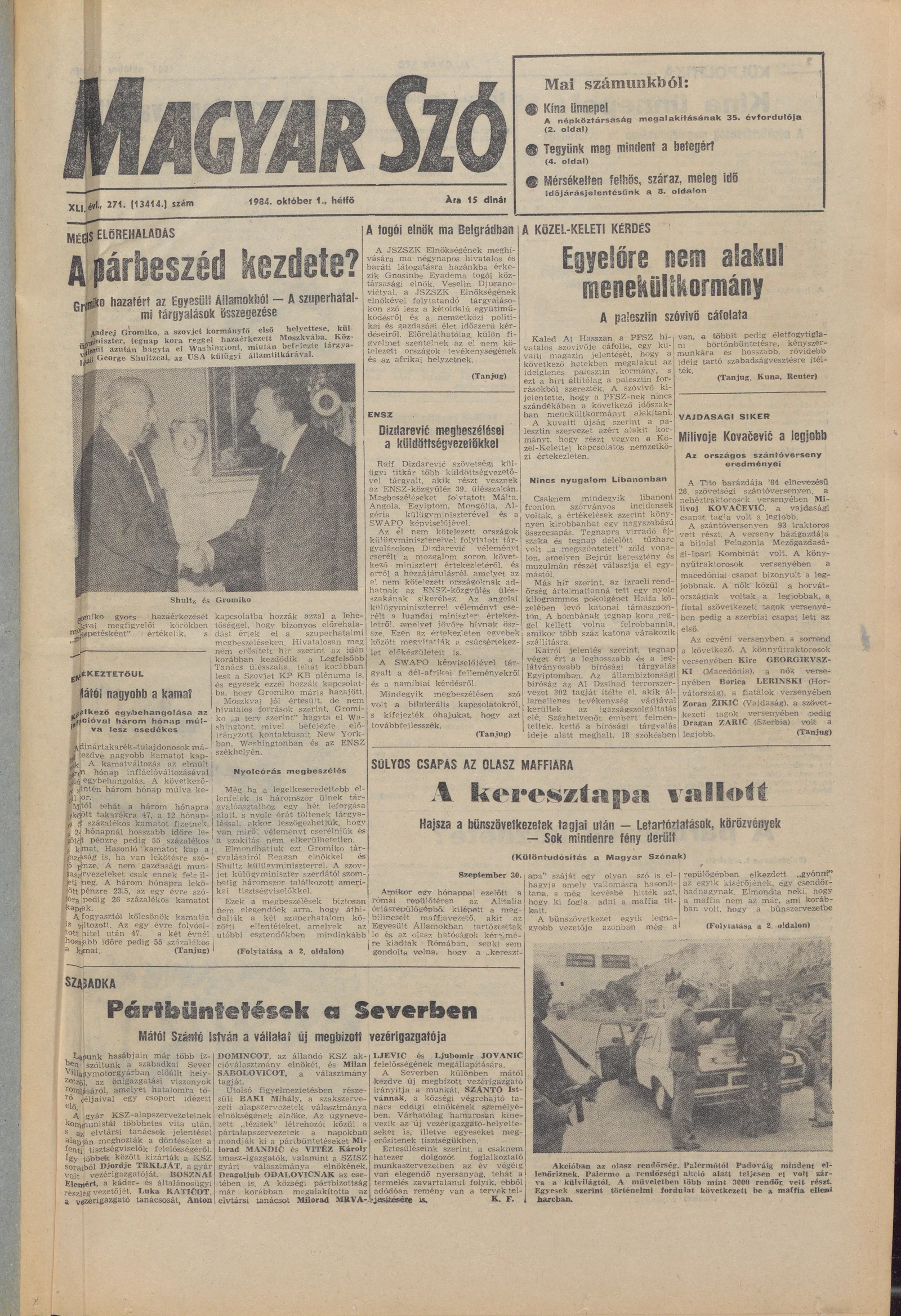 Magyar Szó, 41. évf. 1984. október 1. 271. sz. 1–8. oldal