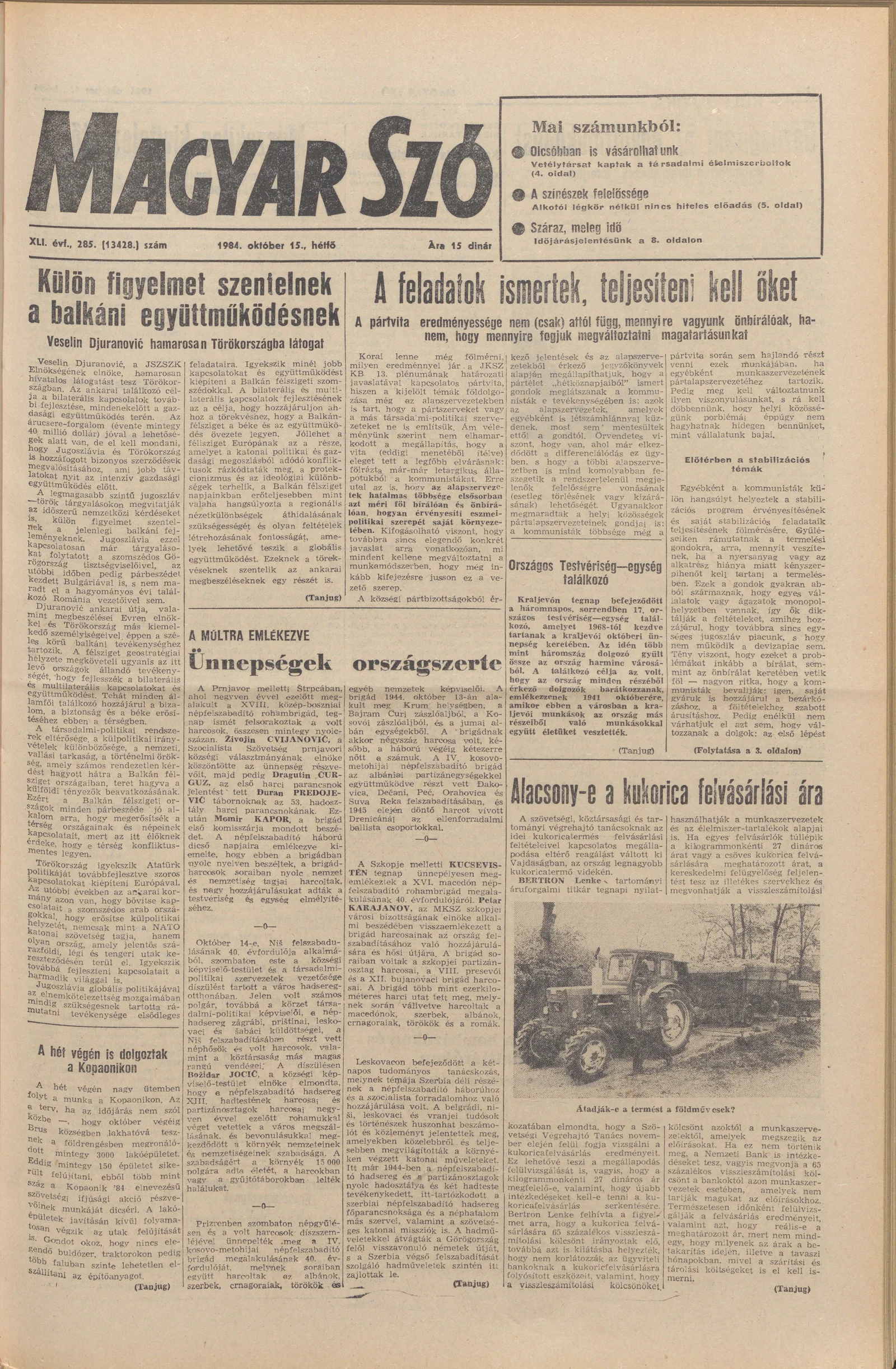 Magyar Szó, 41. évf. 1984. október 15. 285. sz. 1–8. oldal
