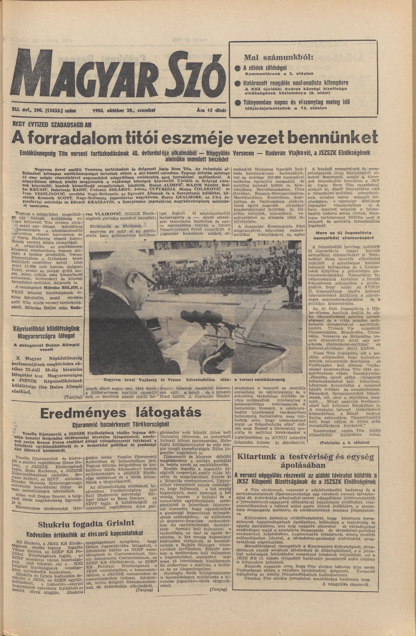 Magyar Szó, 41. évf. 1984. október 20. 290. sz. 1–24. oldal