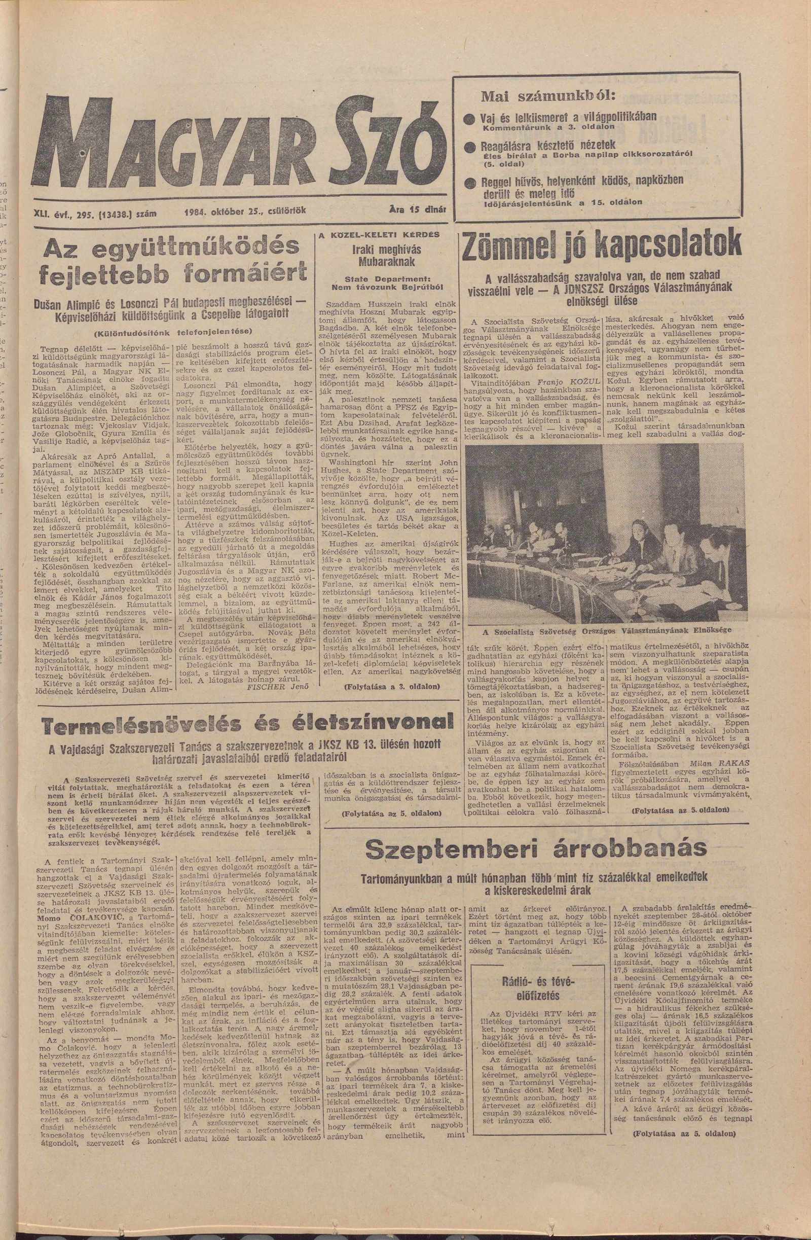 Magyar Szó, 41. évf. 1984. október 25. 295. sz. 1–20. oldal