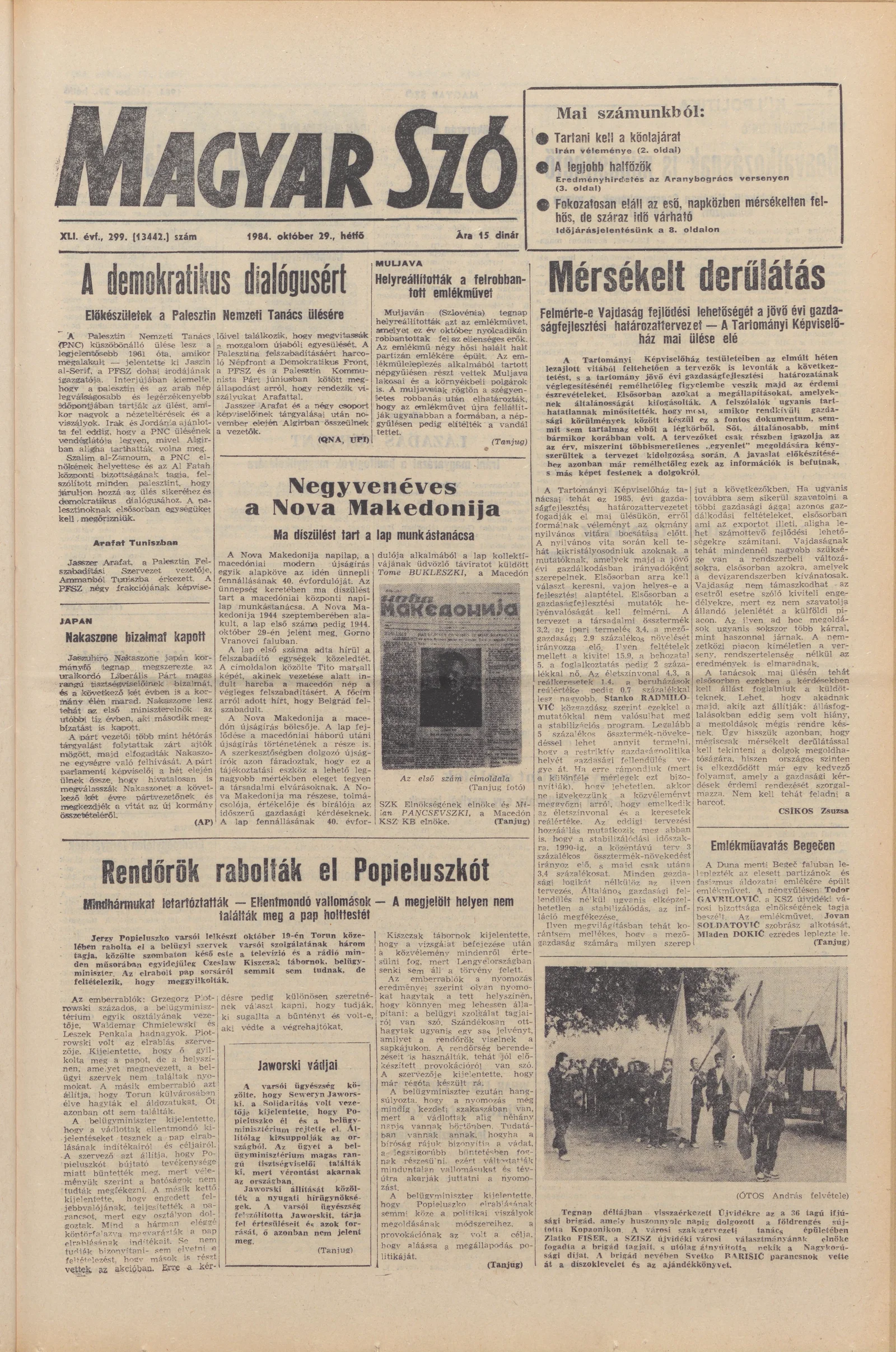 Magyar Szó, 41. évf. 1984. október 29. 299. sz. 1–8. oldal