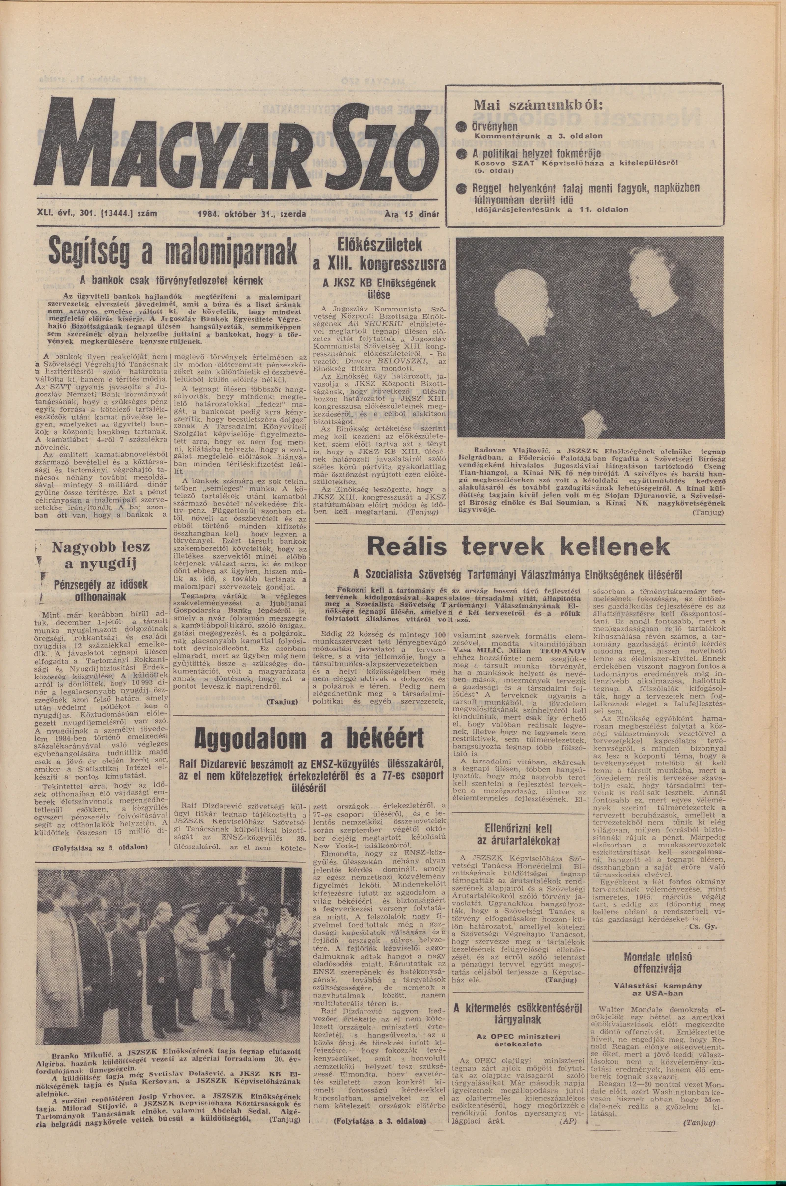 Magyar Szó, 41. évf. 1984. október 31. 301. sz. 1–16. oldal