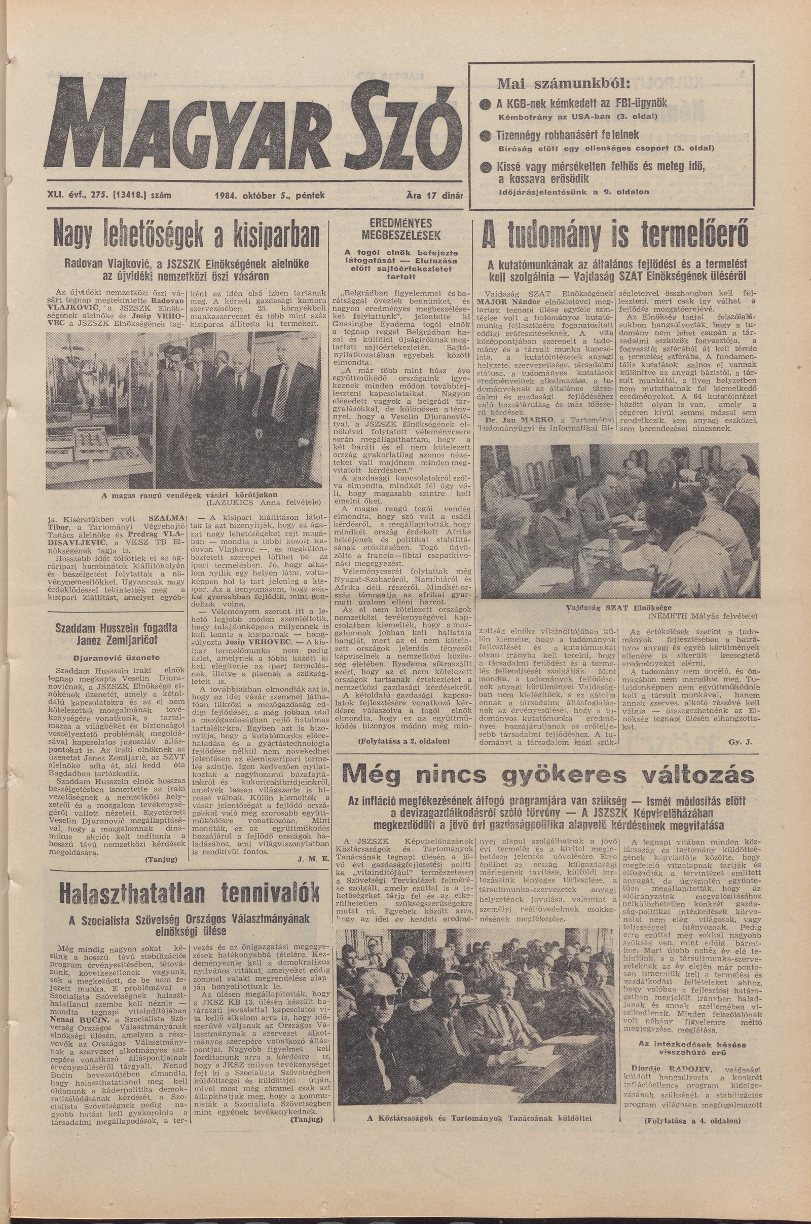Magyar Szó, 41. évf. 1984. október 5. 275. sz. 1–20. oldal