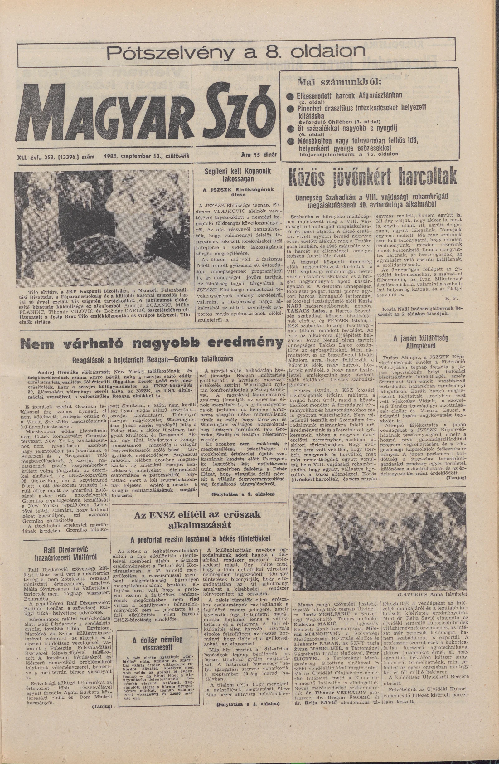 Magyar Szó, 41. évf. 1984. szeptember 13. 253. sz. 1–20. oldal