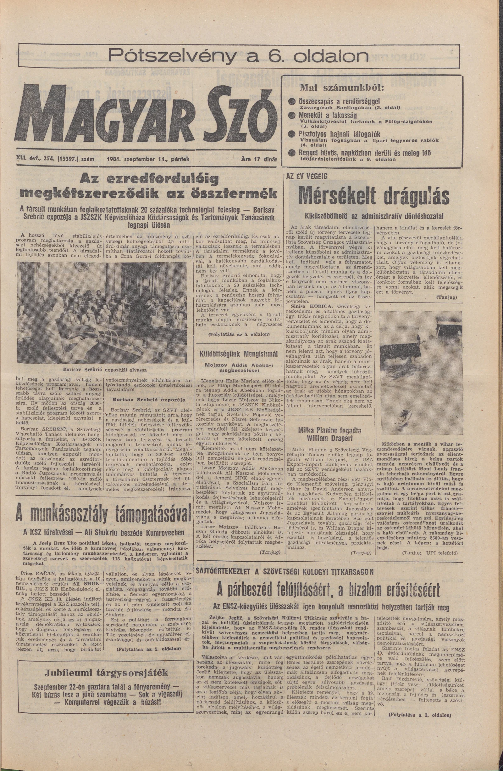 Magyar Szó, 41. évf. 1984. szeptember 14. 254. sz. 1–20. oldal