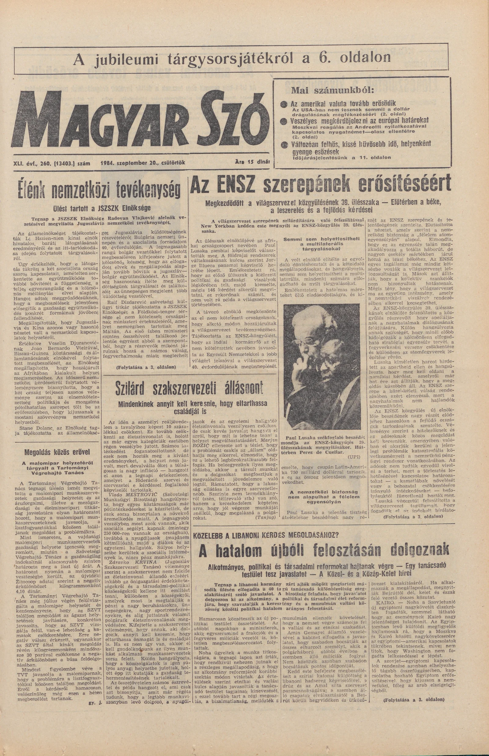 Magyar Szó, 41. évf. 1984. szeptember 20. 260. sz. 1–20. oldal