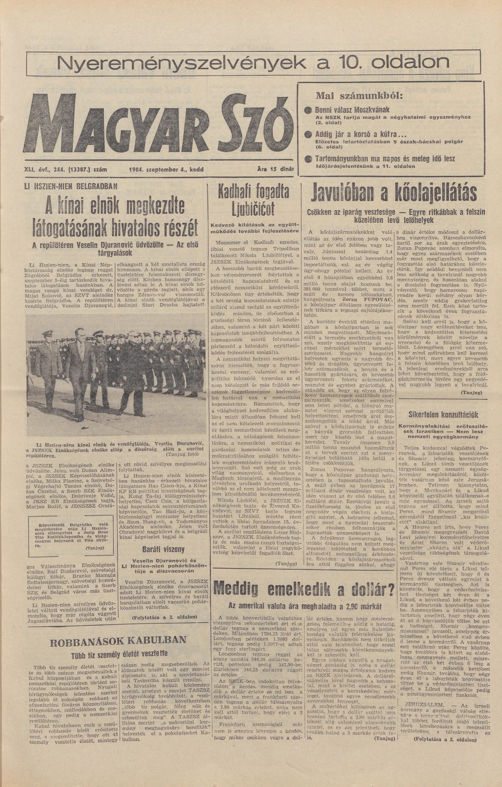 Magyar Szó, 41. évf. 1984. szeptember 4. 244. sz. 1–16. oldal