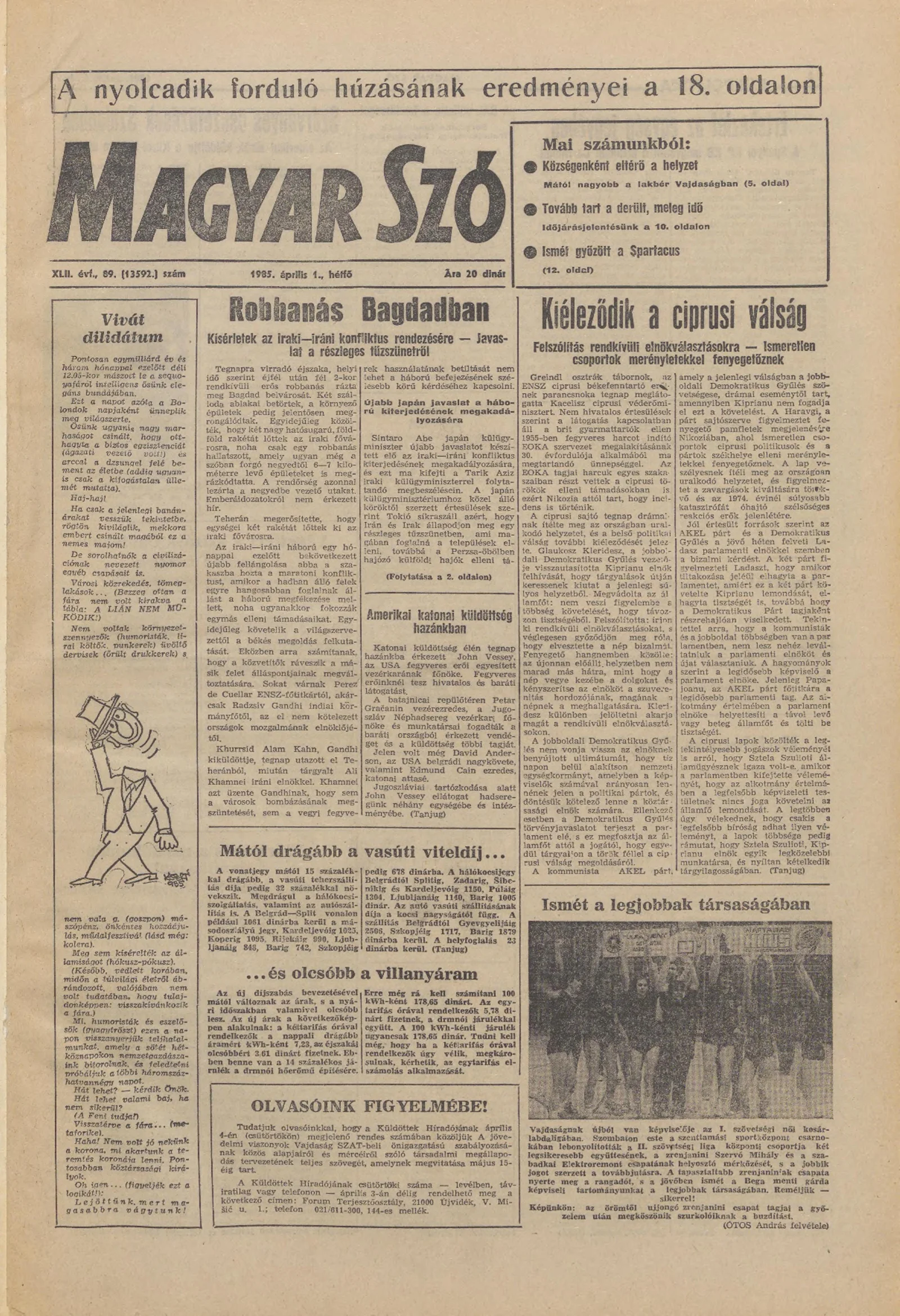 Magyar Szó, 42. évf. 1985. április 1. 89. sz. 1–20. oldal