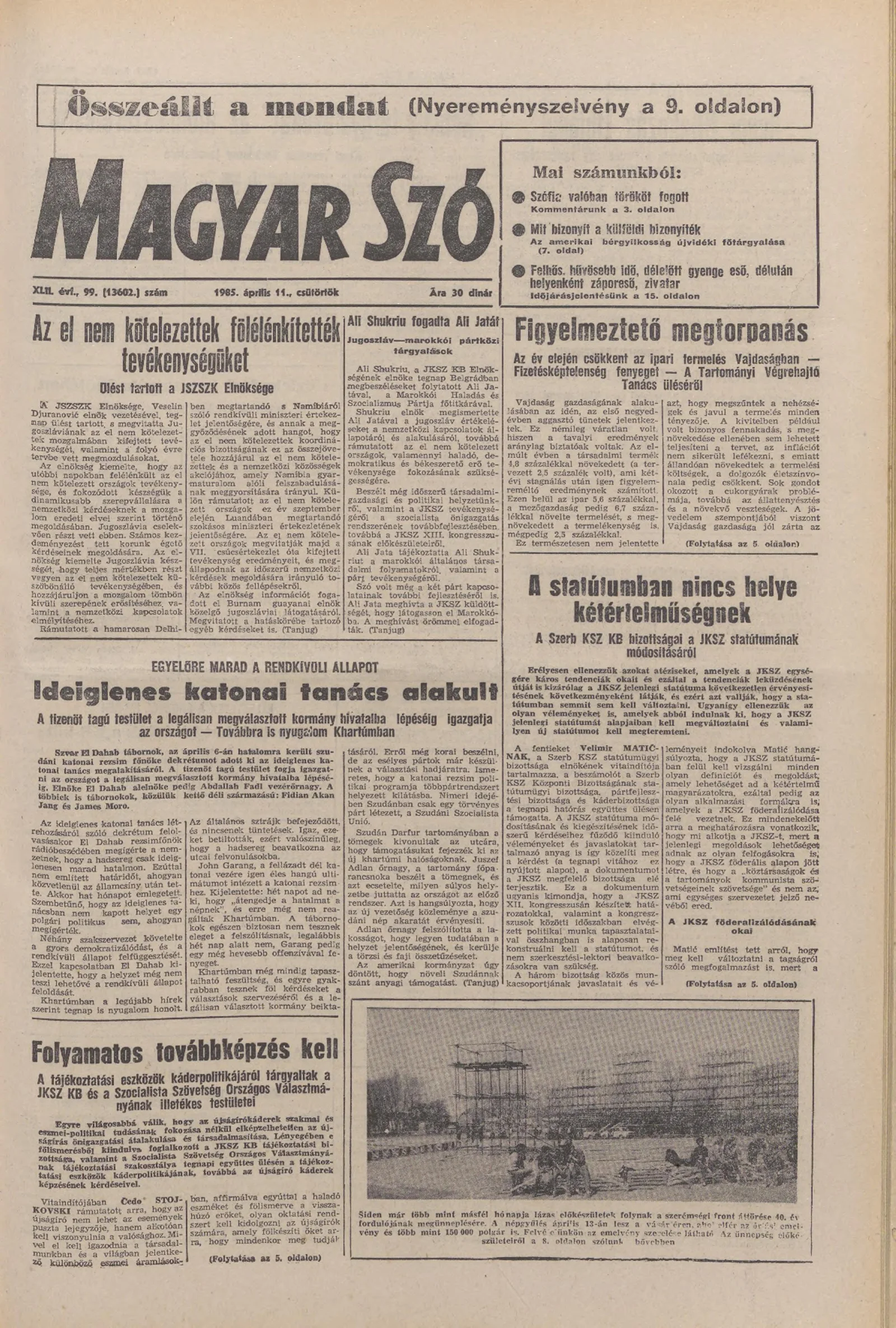 Magyar Szó, 42. évf. 1985. április 11. 99. sz. 1–20. oldal