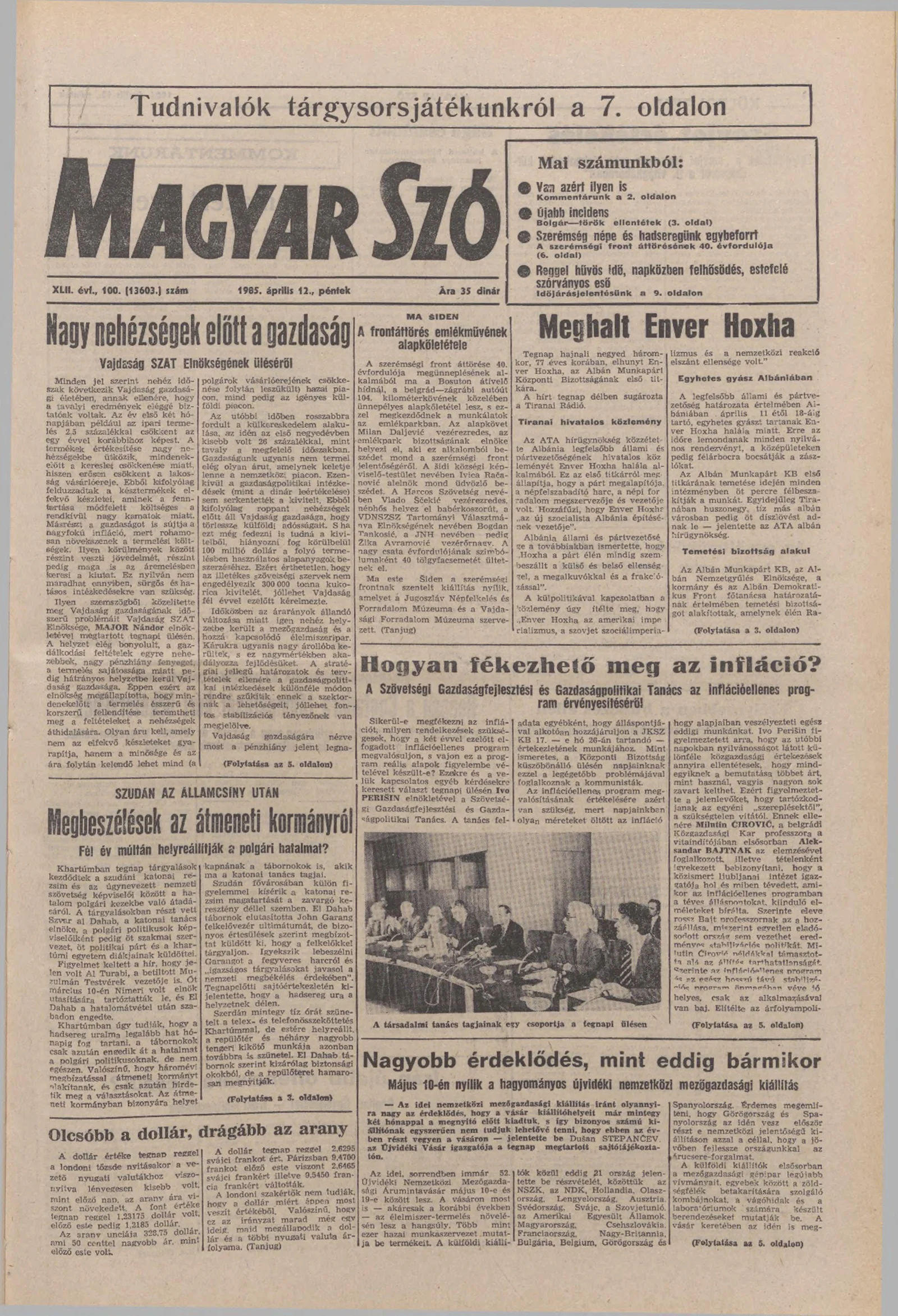 Magyar Szó, 42. évf. 1985. április 12. 100. sz. 1–20. oldal