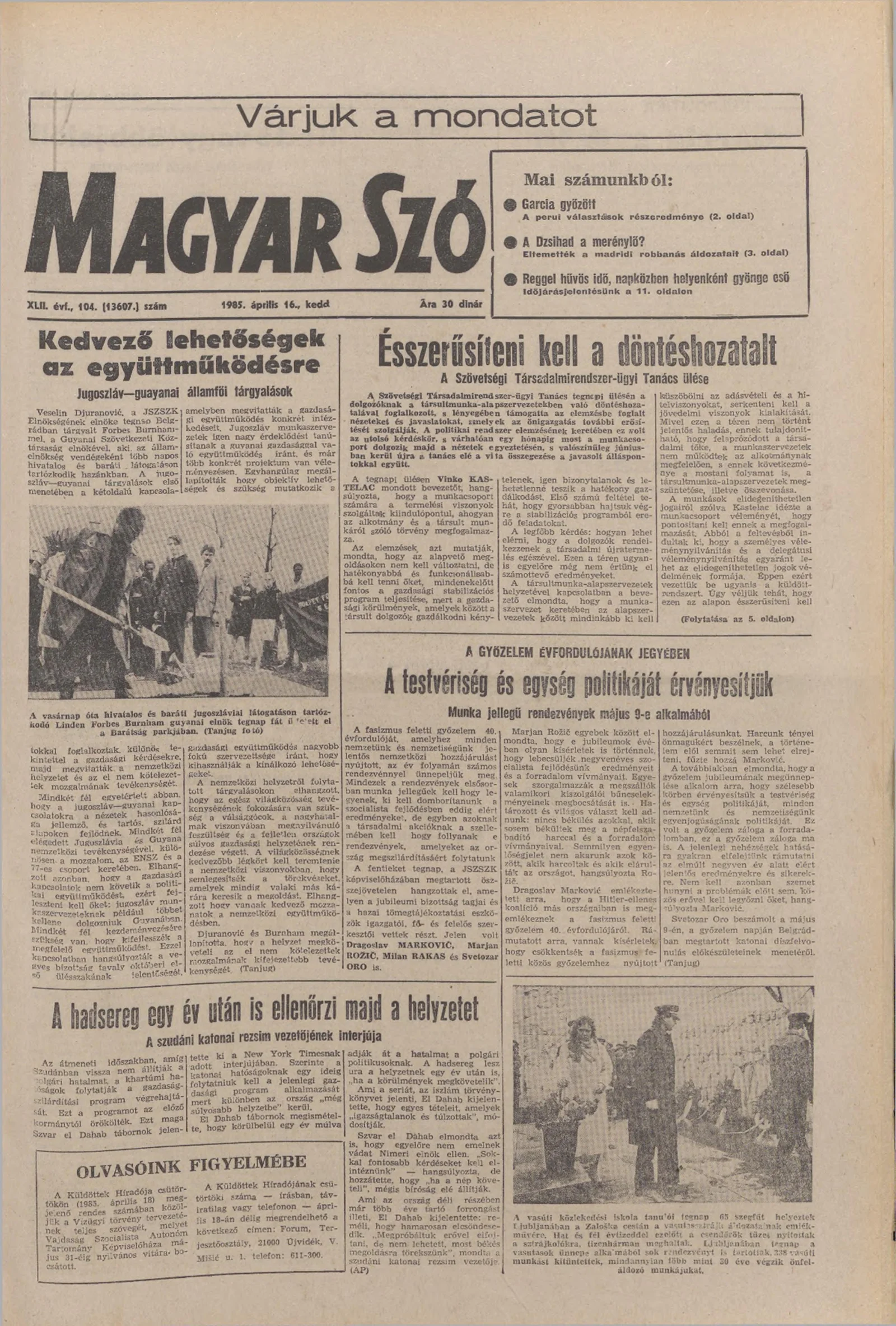 Magyar Szó, 42. évf. 1985. április 16. 104. sz. 1–20. oldal