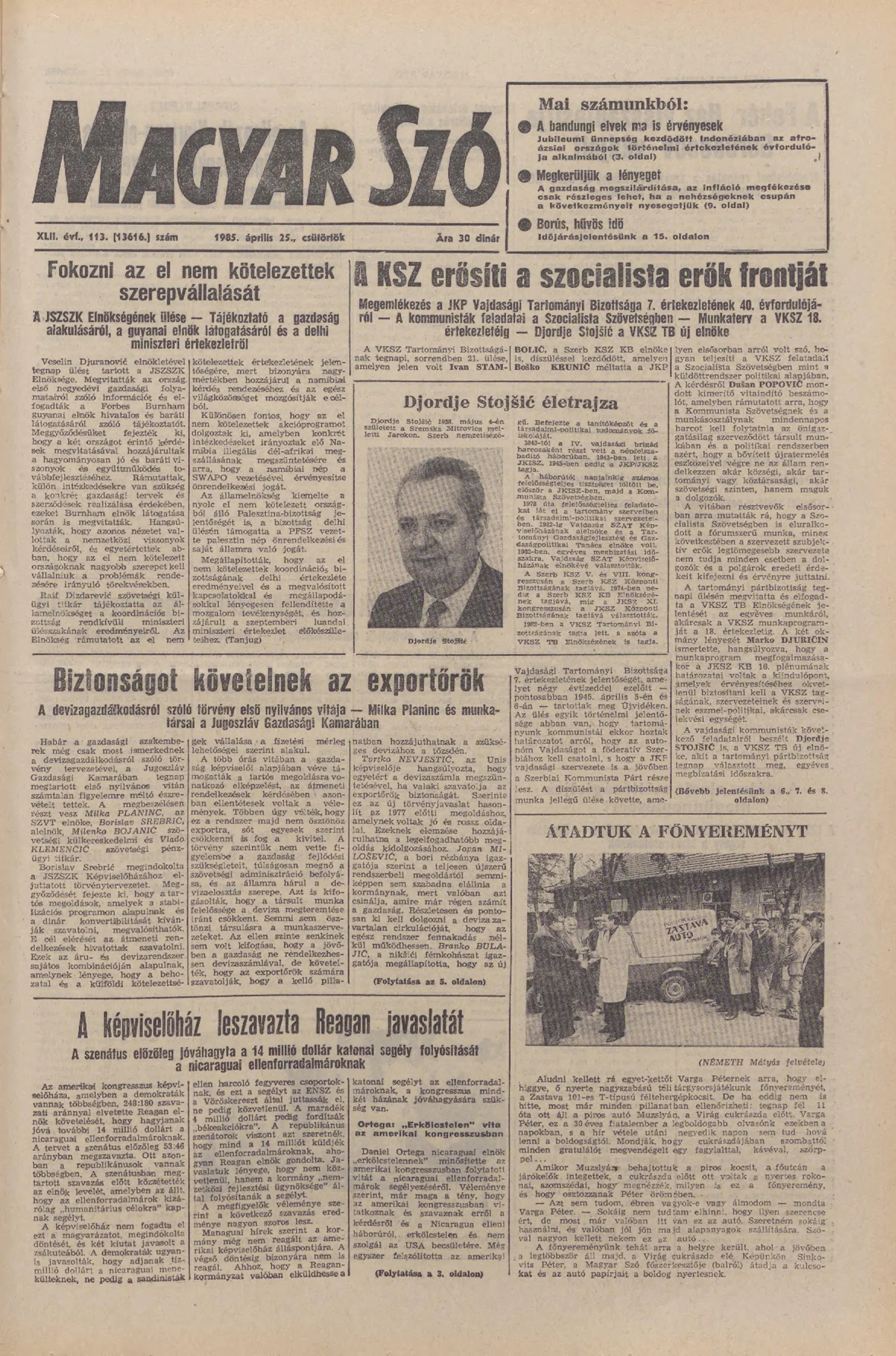 Magyar Szó, 42. évf. 1985. április 25. 113. sz. 1–20. oldal