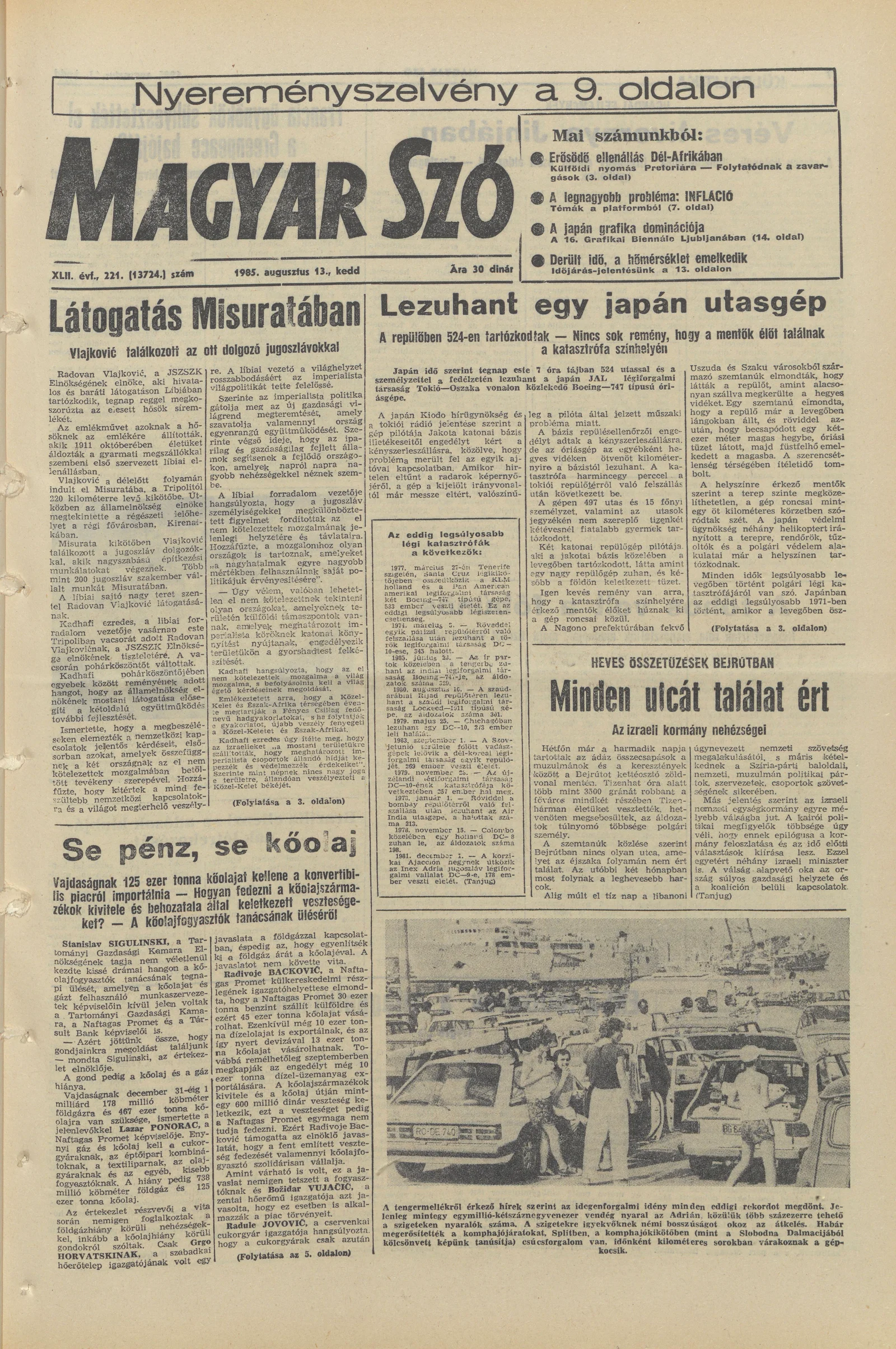 Magyar Szó, 42. évf. 1985. augusztus 13. 221. sz. 1–20. oldal