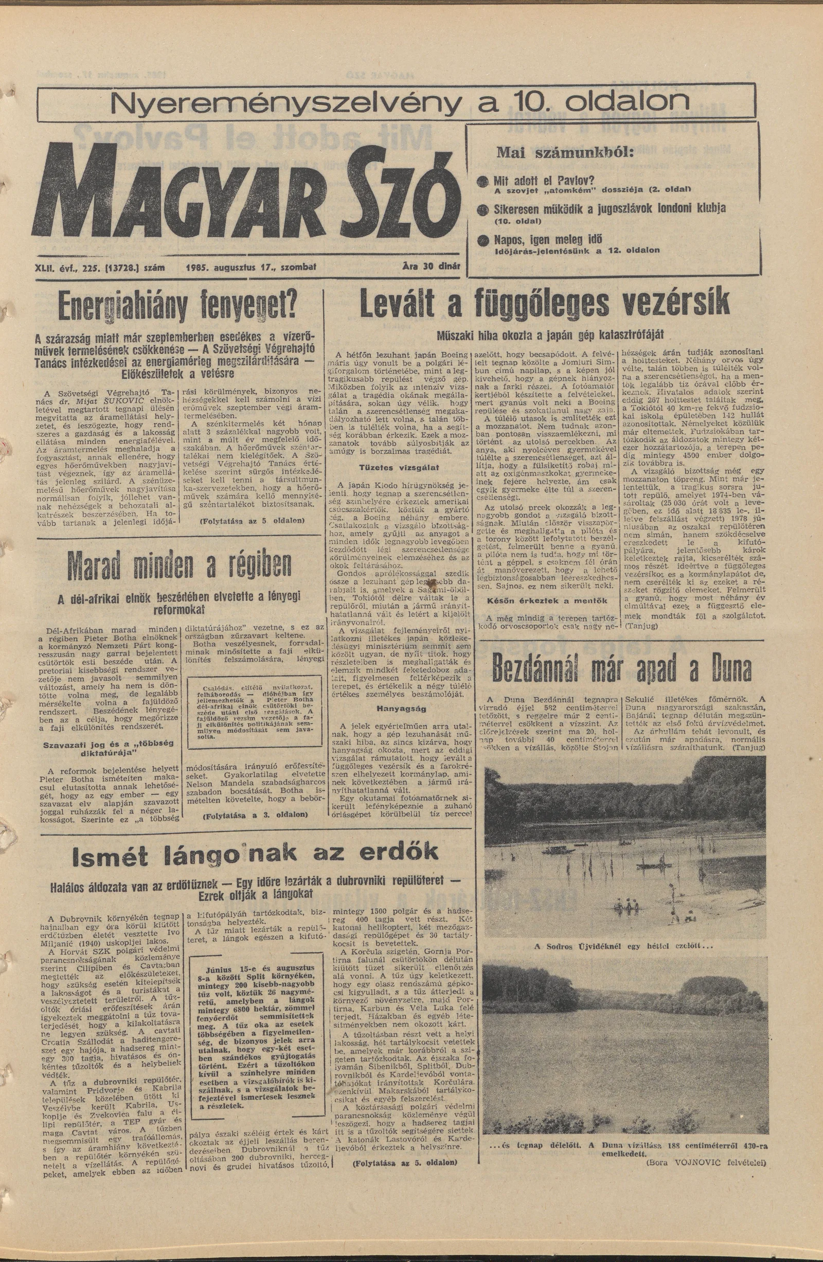 Magyar Szó, 42. évf. 1985. augusztus 17. 225. sz. 1–24. oldal