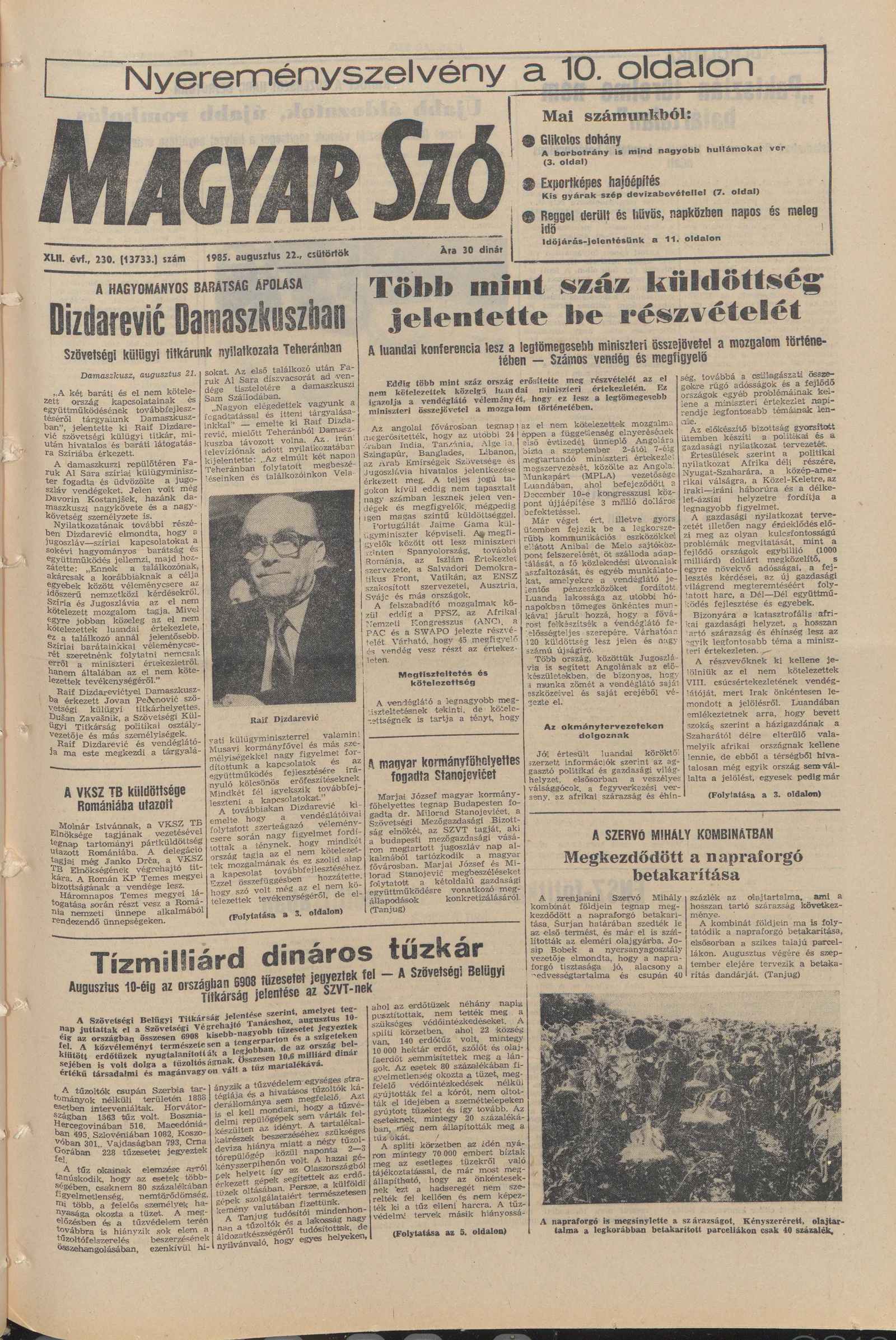 Magyar Szó, 42. évf. 1985. augusztus 22. 230. sz. 1–16. oldal