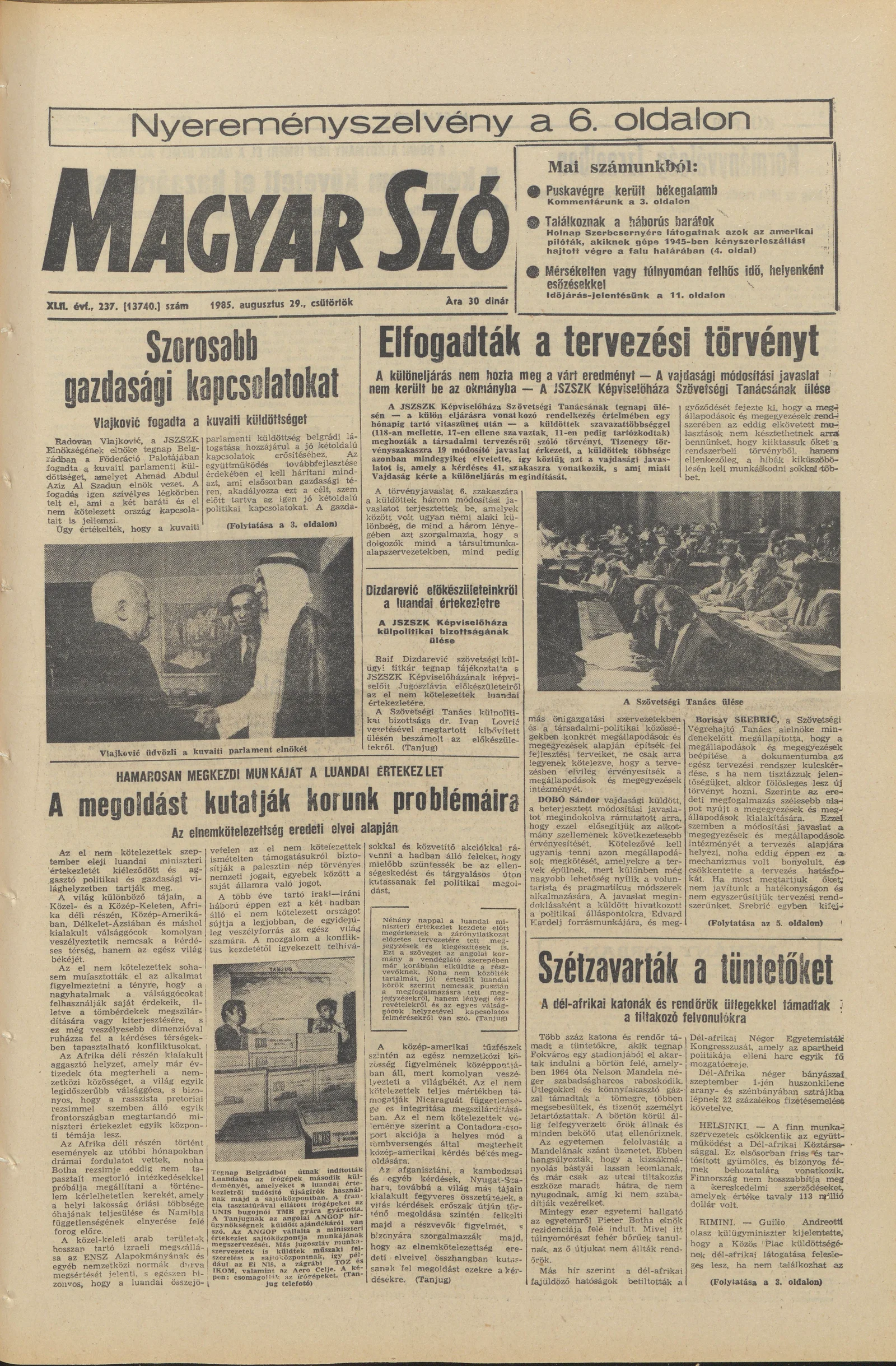 Magyar Szó, 42. évf. 1985. augusztus 29. 237. sz. 1–16. oldal