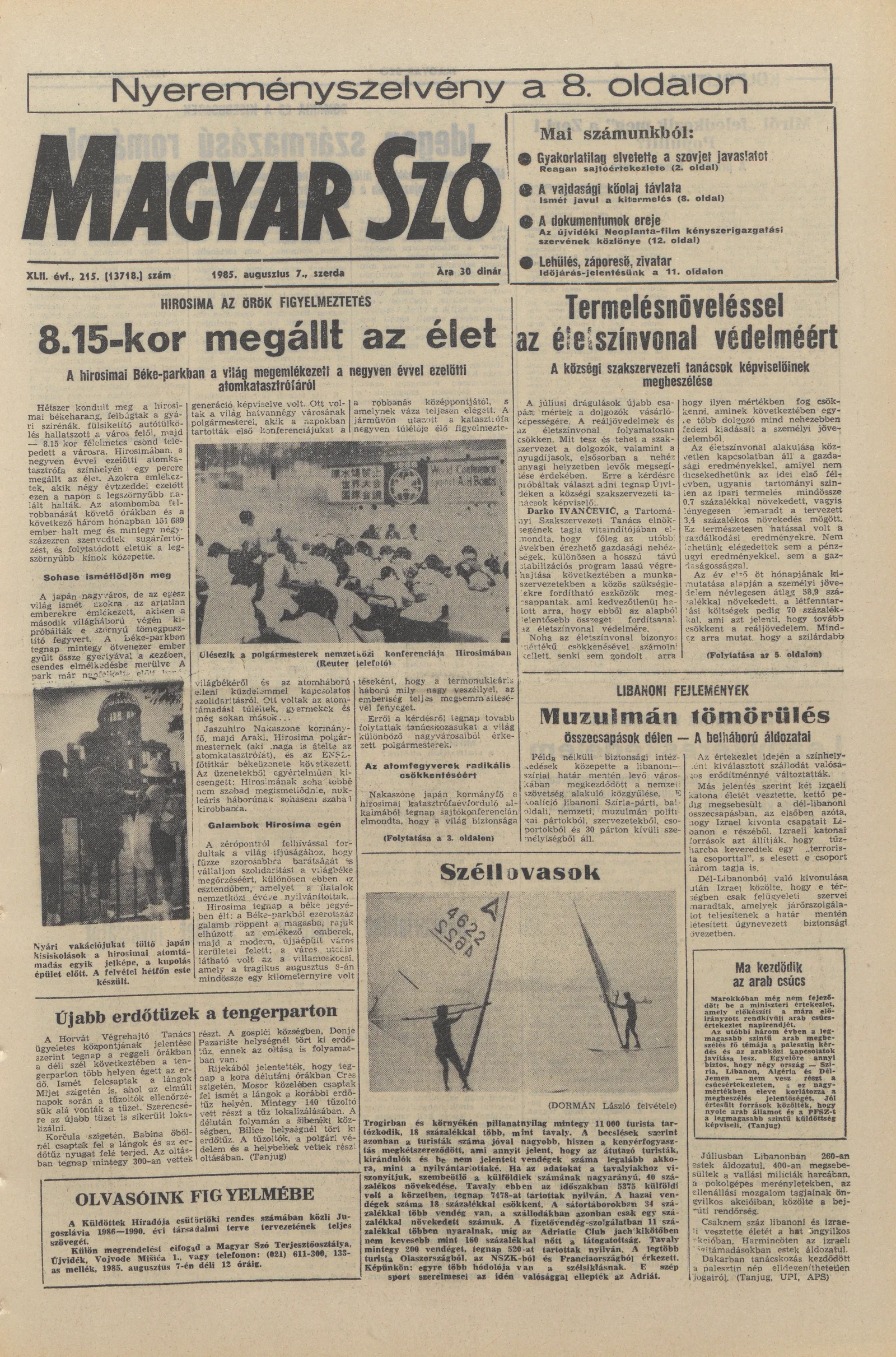 Magyar Szó, 42. évf. 1985. augusztus 7. 215. sz. 1–16. oldal