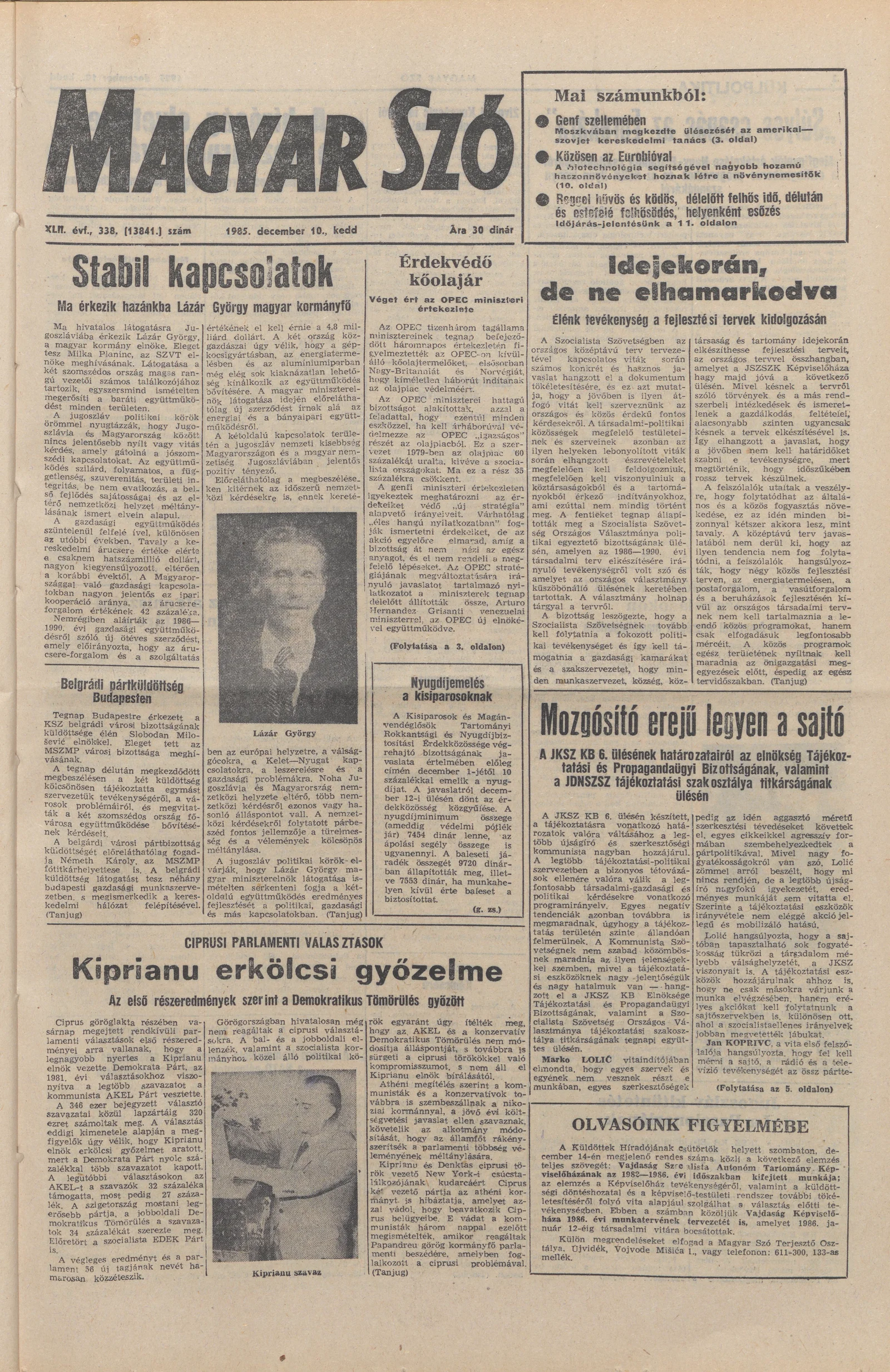 Magyar Szó, 42. évf. 1985. december 10. 338. sz. 1–20. oldal