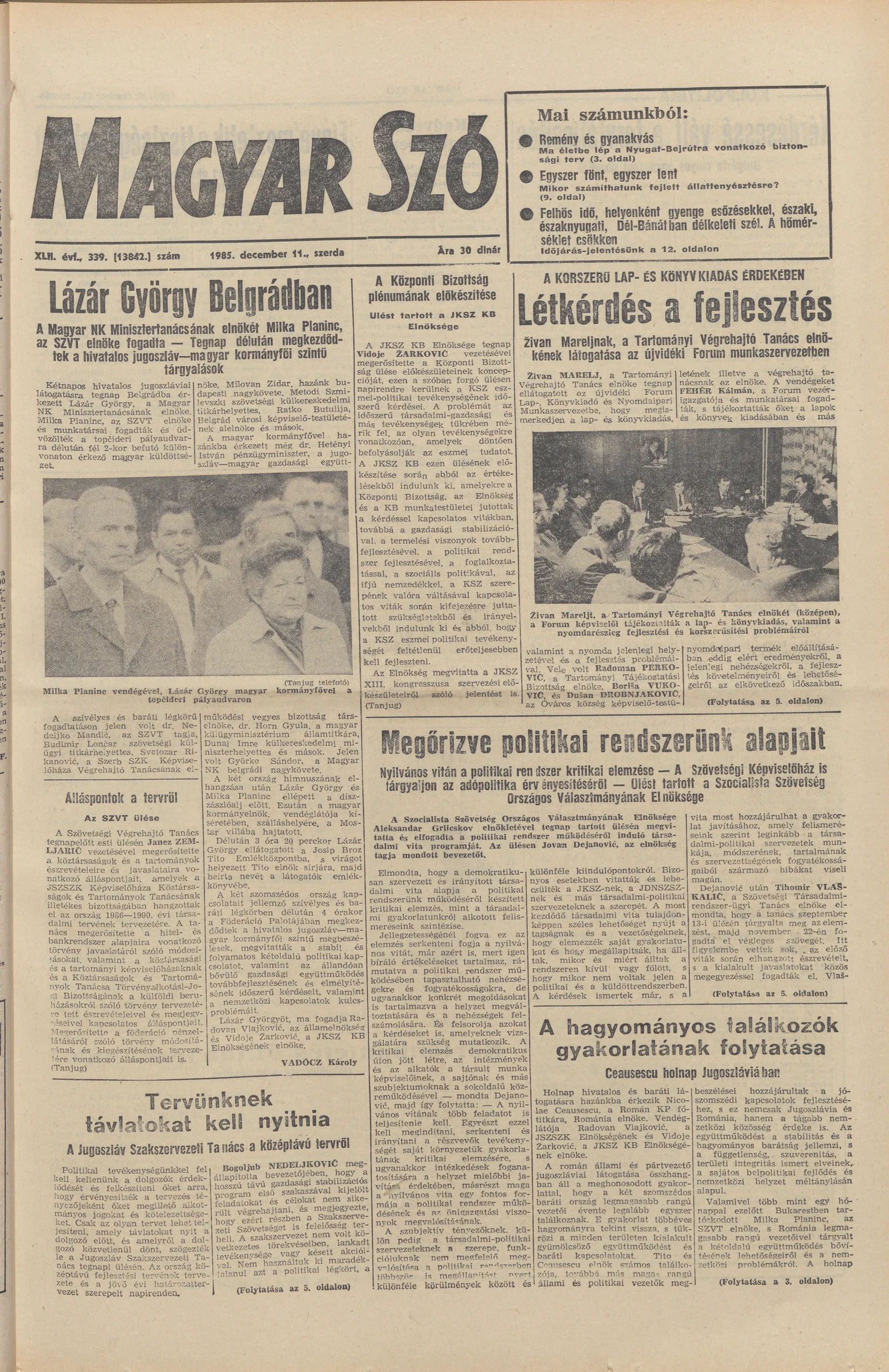 Magyar Szó, 42. évf. 1985. december 11. 339. sz. 1–16. oldal