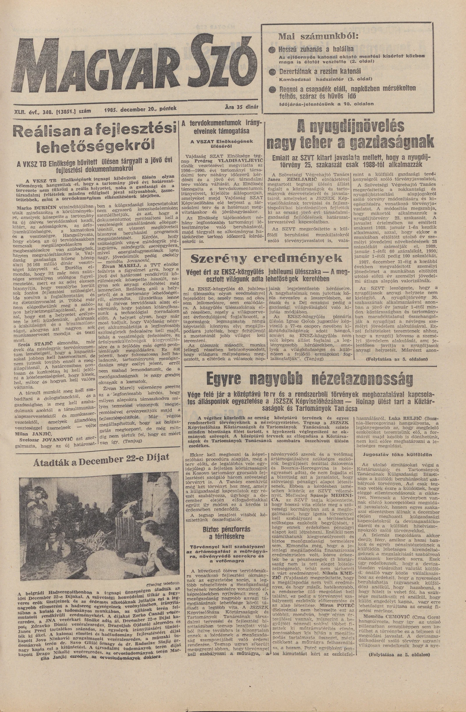 Magyar Szó, 42. évf. 1985. december 20. 348. sz. 1–20. oldal
