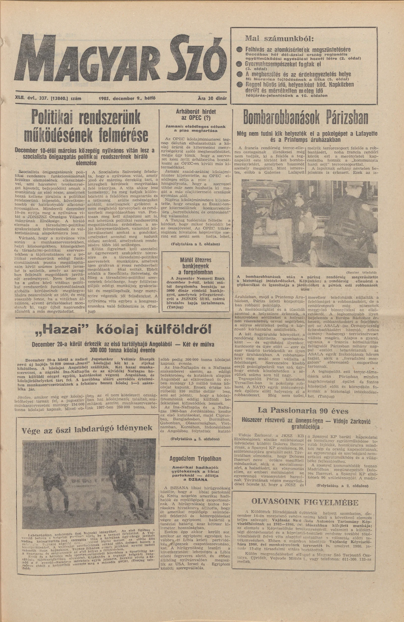 Magyar Szó, 42. évf. 1985. december 9. 337. sz. 1–20. oldal