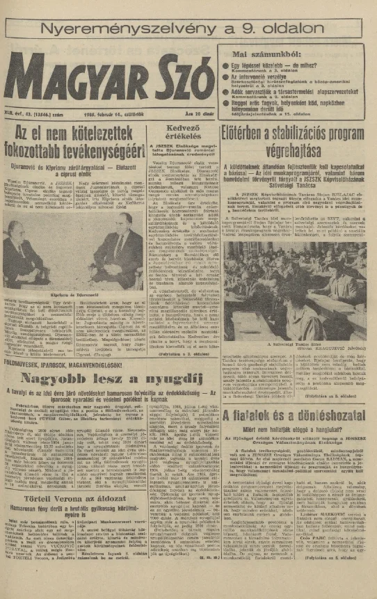 Magyar Szó, 42. évf. 1985. február 14. 43. sz. 1–20. oldal