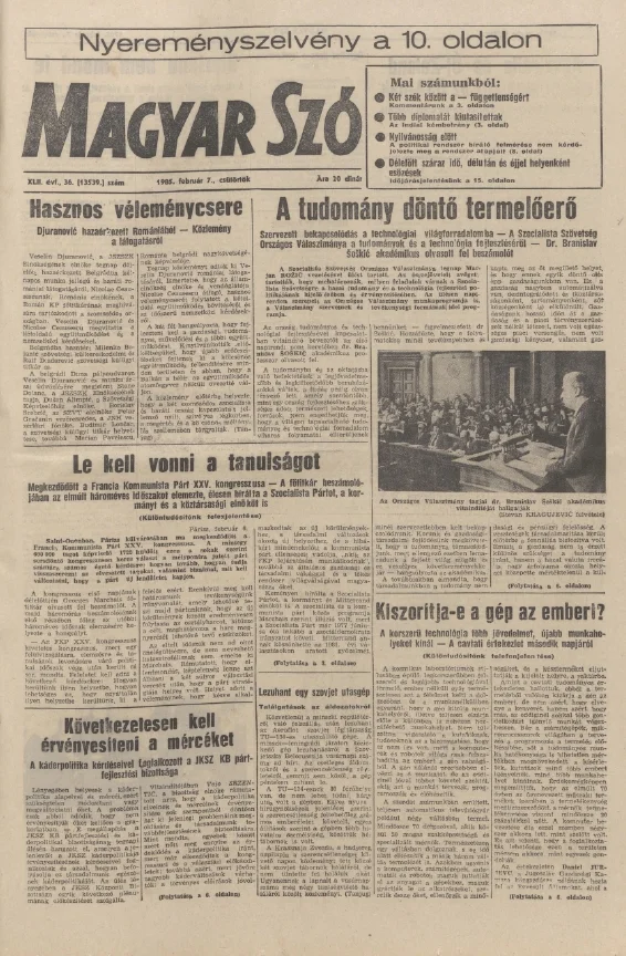 Magyar Szó, 42. évf. 1985. február 7. 36. sz. 1–20. oldal