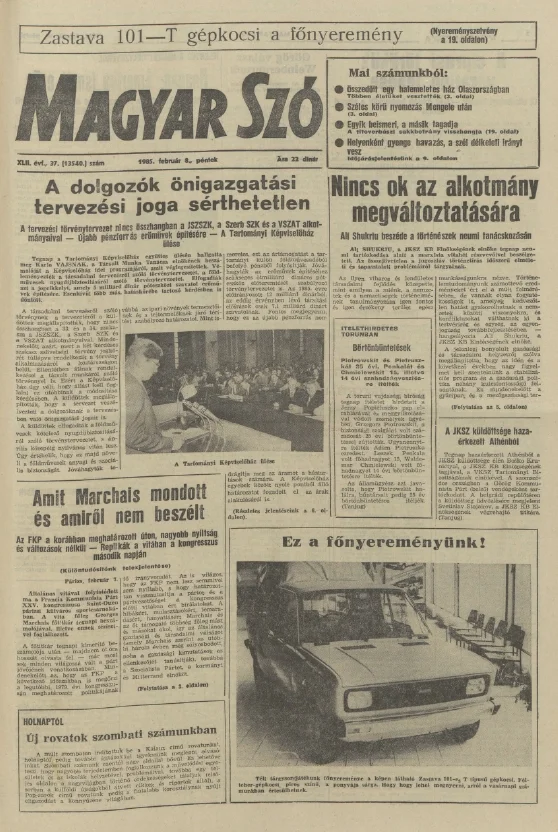 Magyar Szó, 42. évf. 1985. február 8. 37. sz. 1–20. oldal