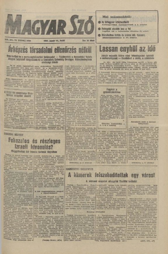 Magyar Szó, 42. évf. 1985. január 15. 13. sz. 1–20. oldal