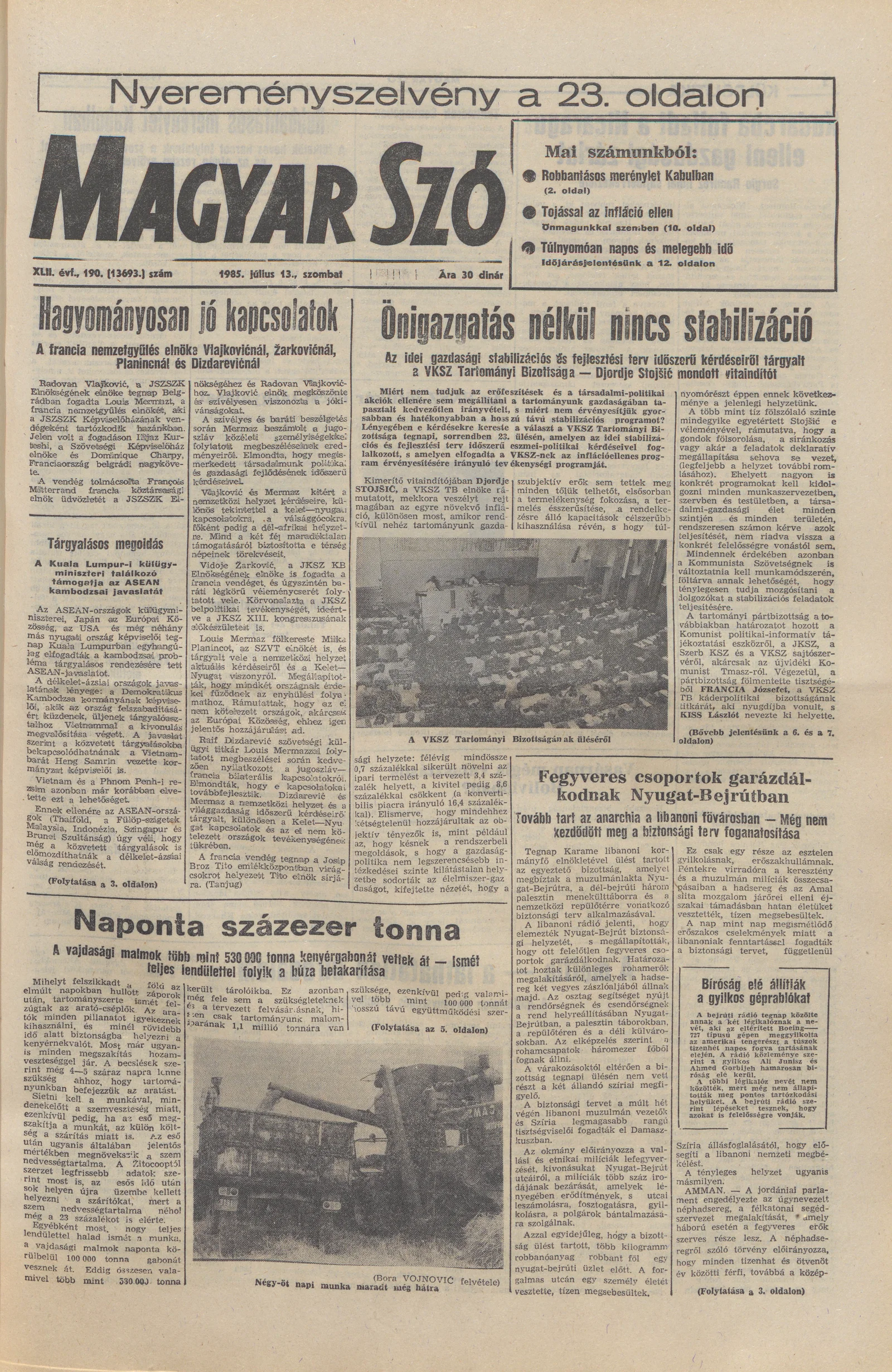 Magyar Szó, 42. évf. 1985. július 13. 190. sz. 1–24. oldal