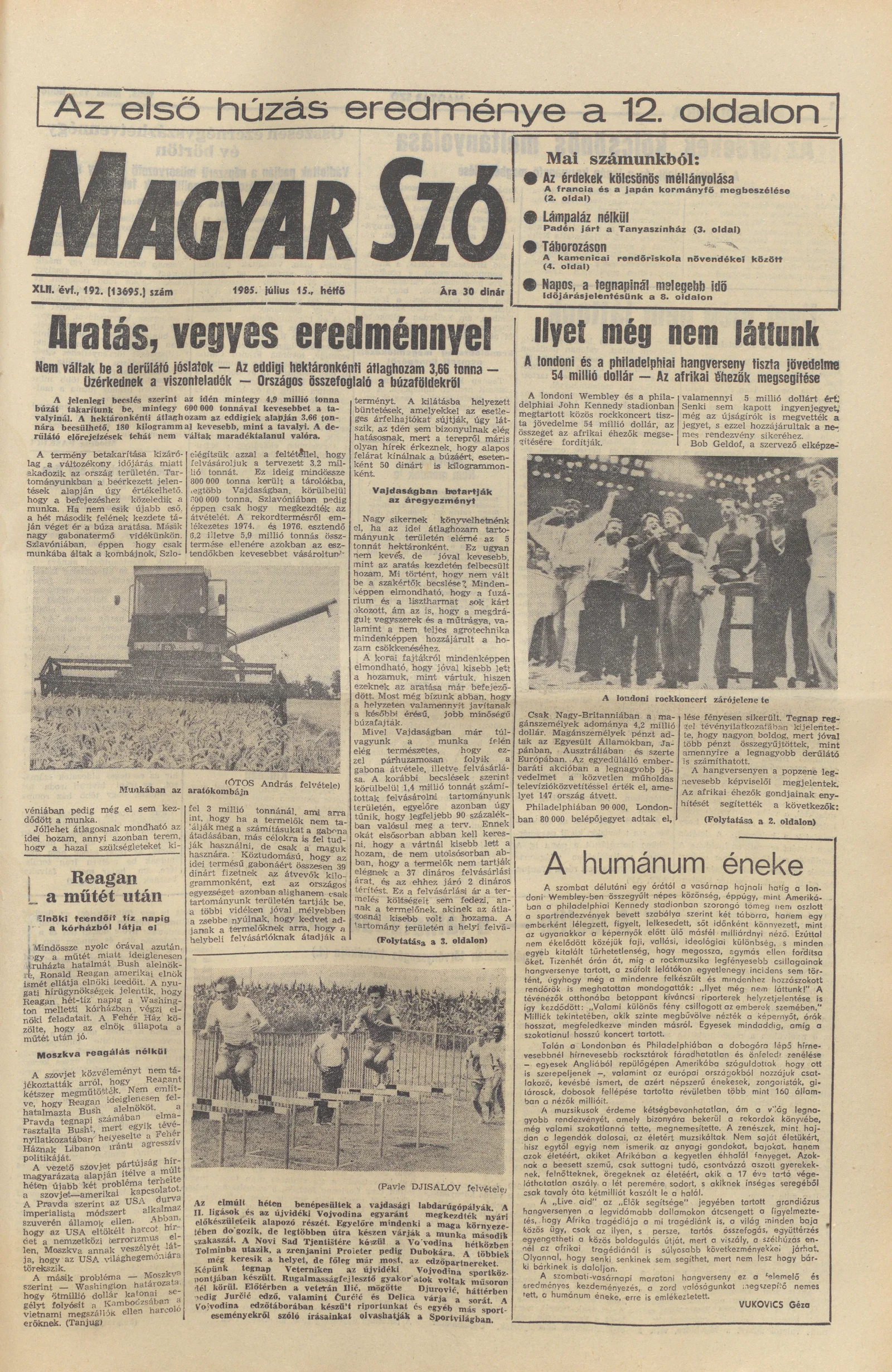 Magyar Szó, 42. évf. 1985. július 15. 192. sz. 1–16. oldal