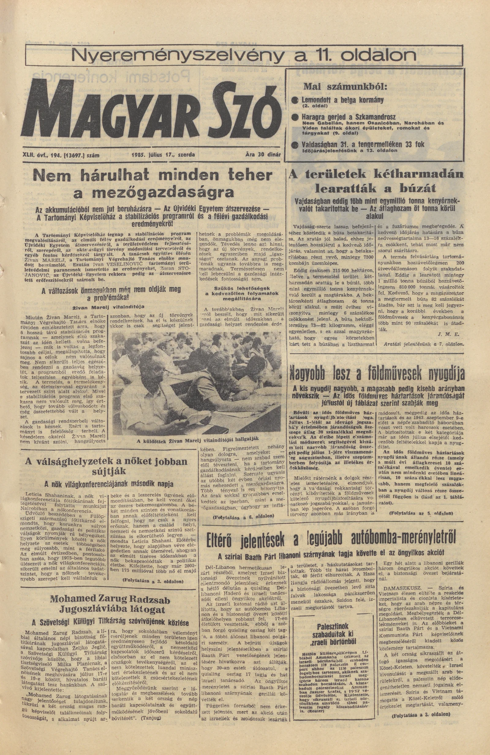 Magyar Szó, 42. évf. 1985. július 17. 194. sz. 1–16. oldal