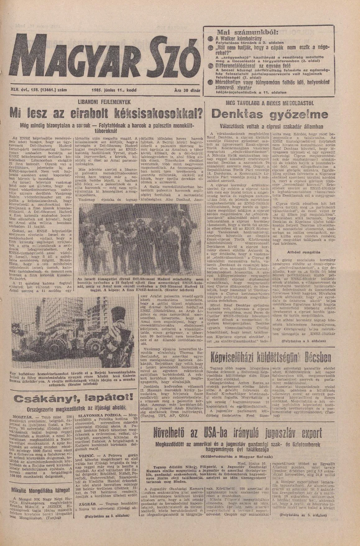 Magyar Szó, 42. évf. 1985. június 11. 158. sz. 1–20. oldal