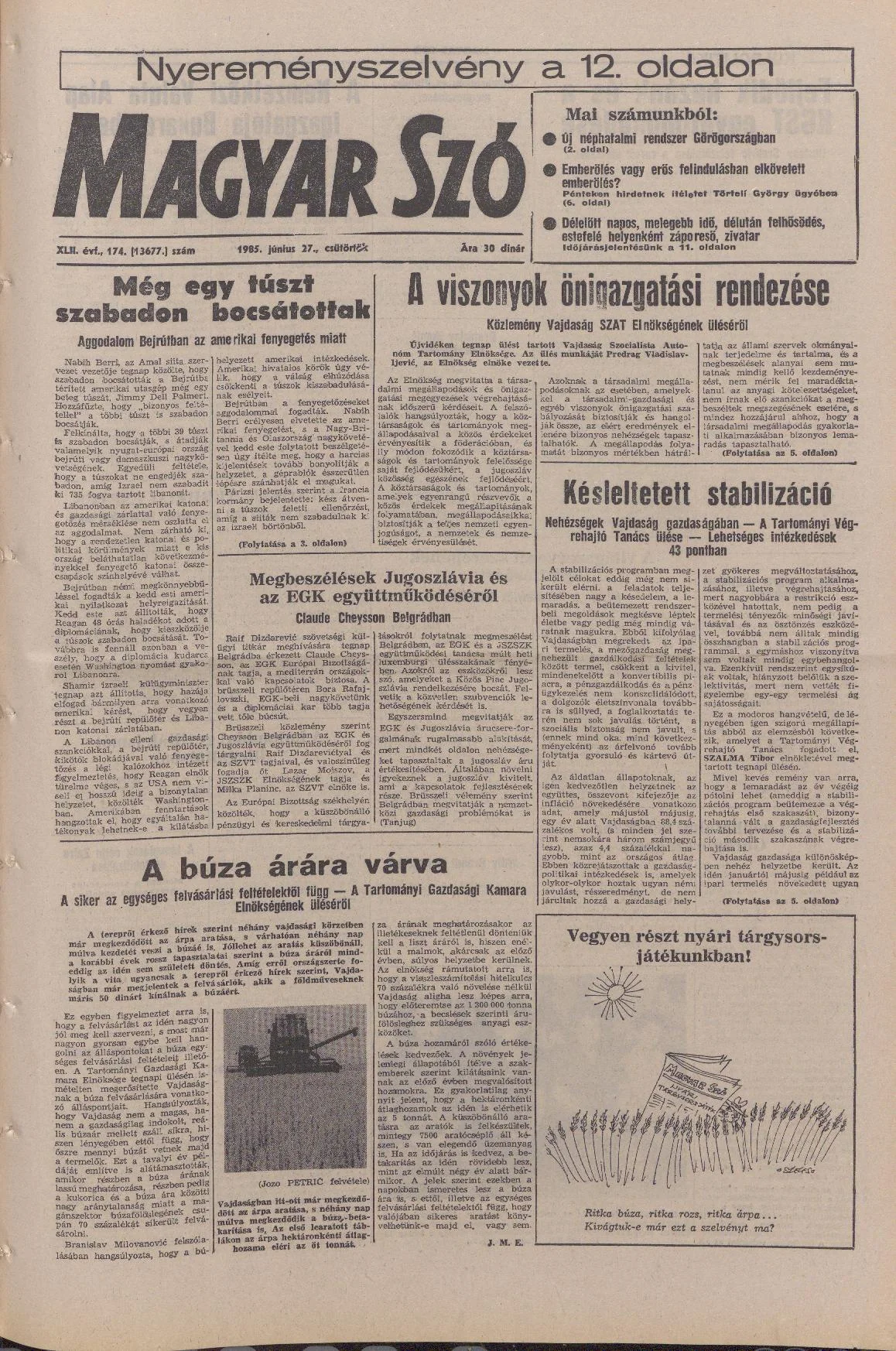 Magyar Szó, 42. évf. 1985. június 27. 174. sz. 1–20. oldal