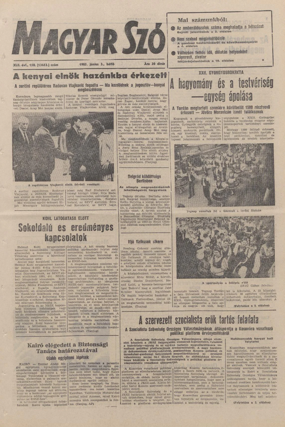 Magyar Szó, 42. évf. 1985. június 3. 150. sz. 1–20. oldal