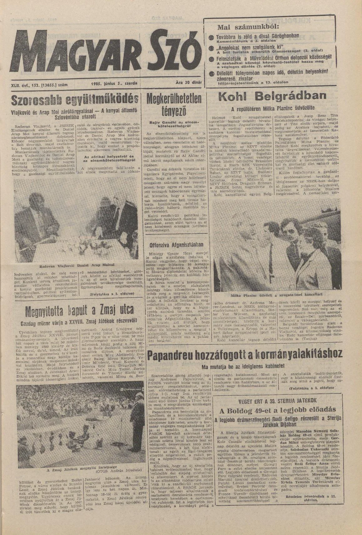 Magyar Szó, 42. évf. 1985. június 5. 152. sz. 1–16. oldal