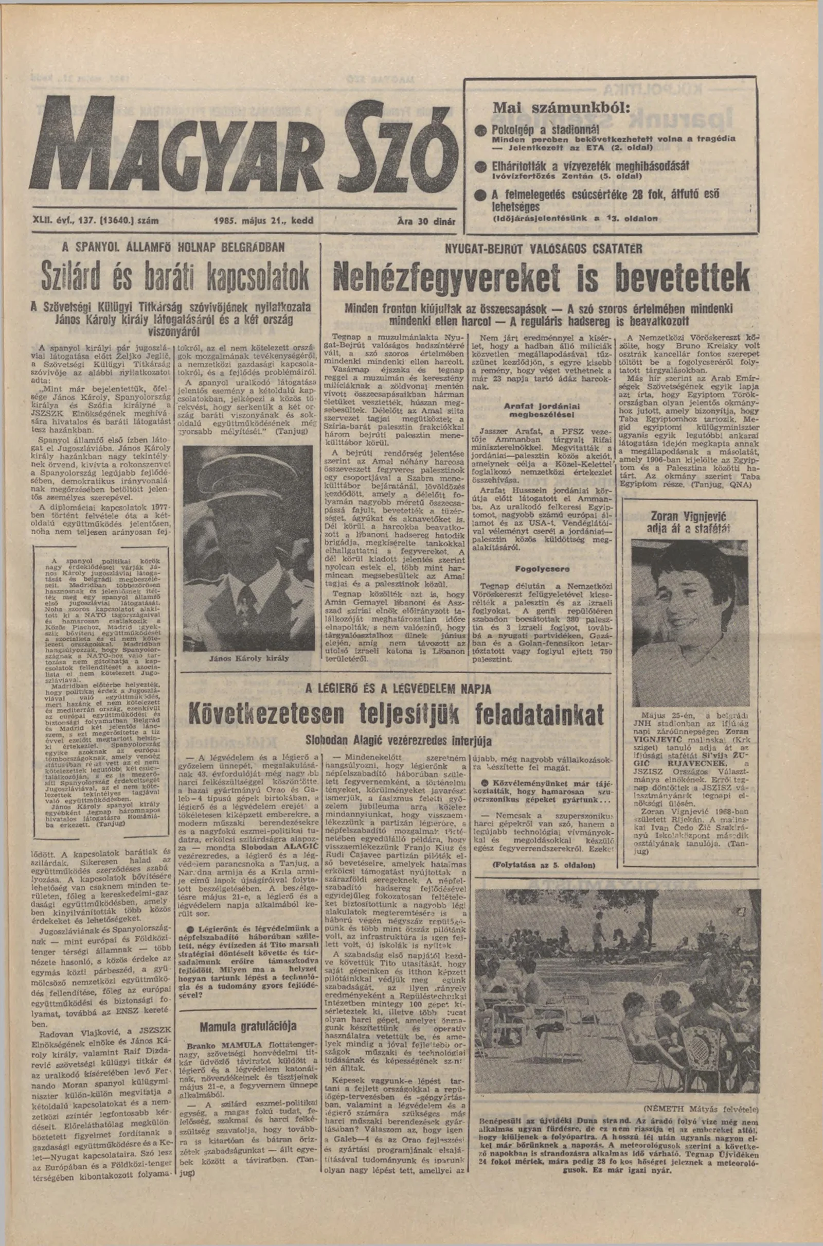 Magyar Szó, 42. évf. 1985. május 21. 137. sz. 1–20. oldal