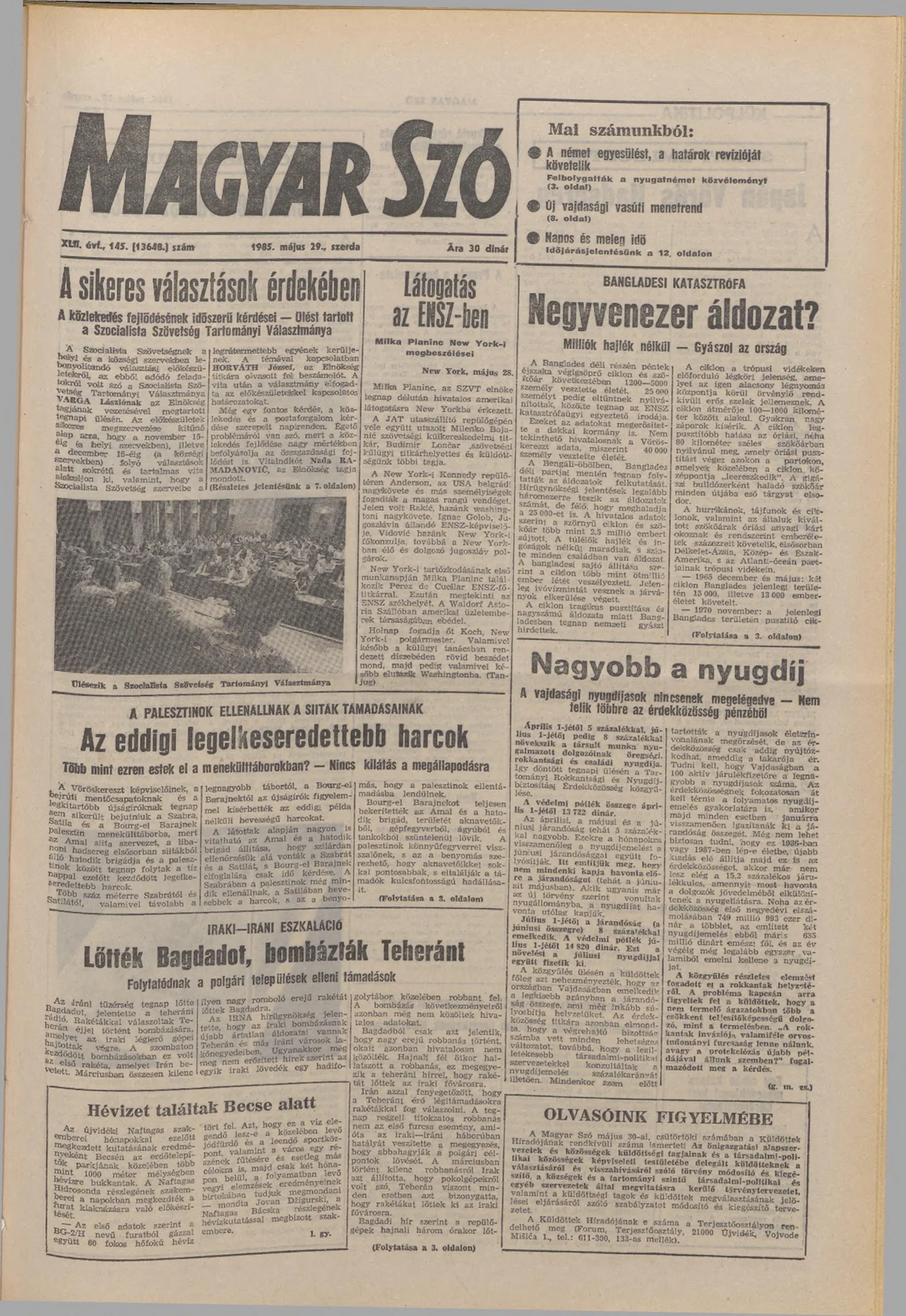 Magyar Szó, 42. évf. 1985. május 29. 145. sz. 1–16. oldal