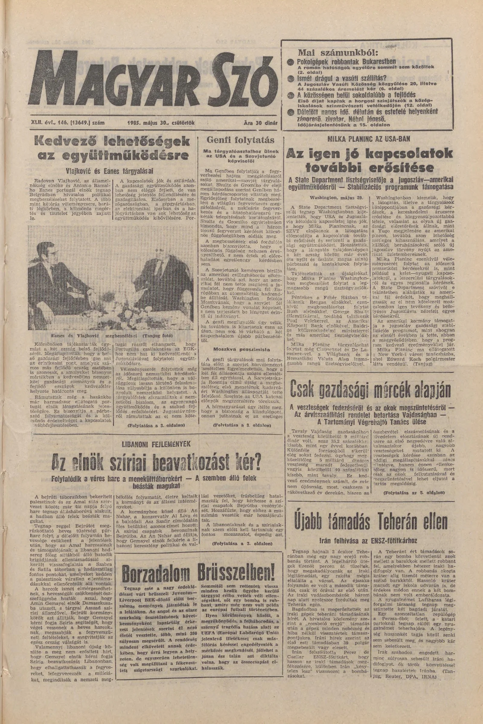 Magyar Szó, 42. évf. 1985. május 30. 146. sz. 1–20. oldal