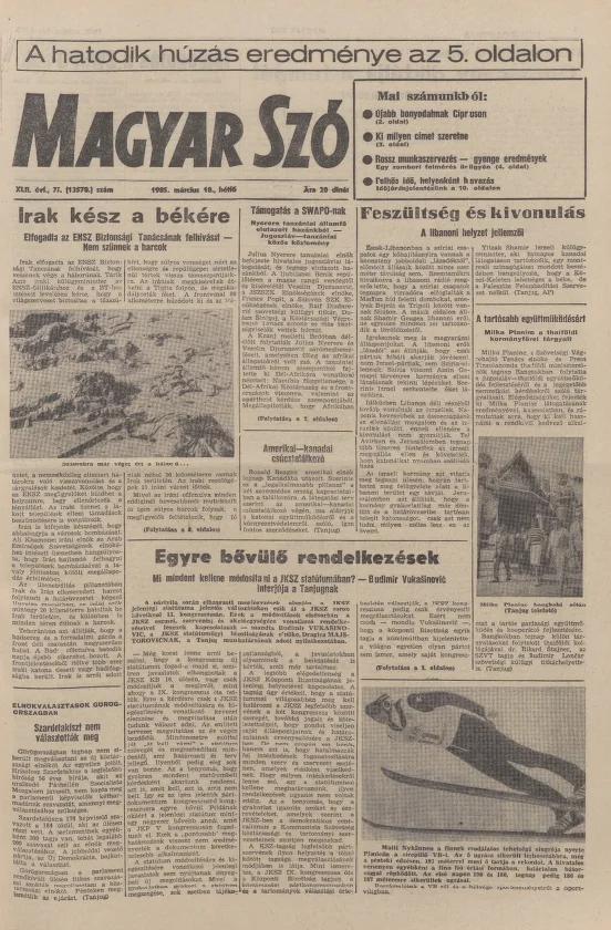 Magyar Szó, 42. évf. 1985. március 18. 75. sz. 1–22. oldal