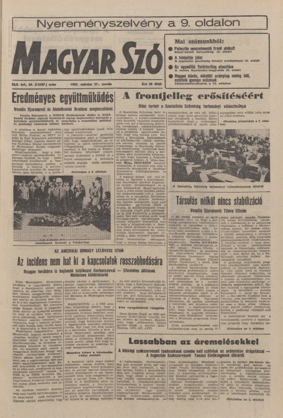Magyar Szó, 42. évf. 1985. március 27. 84. sz. 1–16. oldal